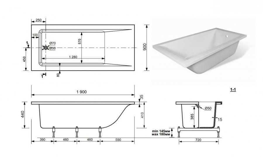 Экран фронтальный, торцевой для ванны