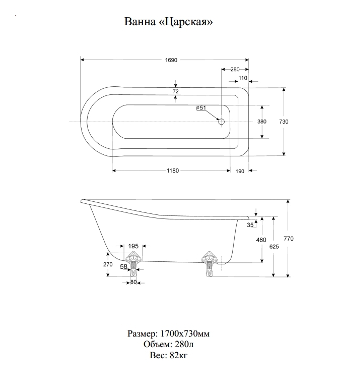 | Коллекция | Царская 170х73 |