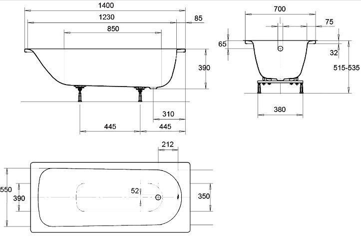 Стальная ванна Kaldewei Eurowa 140х70 см (309-1) 119512030001