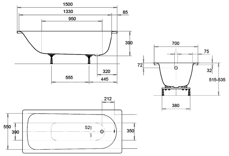 Стальная ванна Kaldewei Eurowa 150х70 см (310-1) 119612030001
