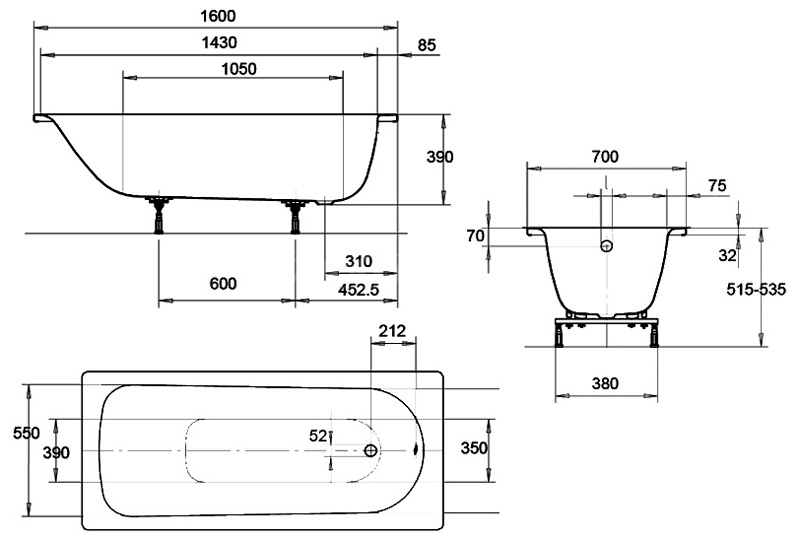 Стальная ванна Kaldewei Eurowa 160х70 см (311-1) 119712030001