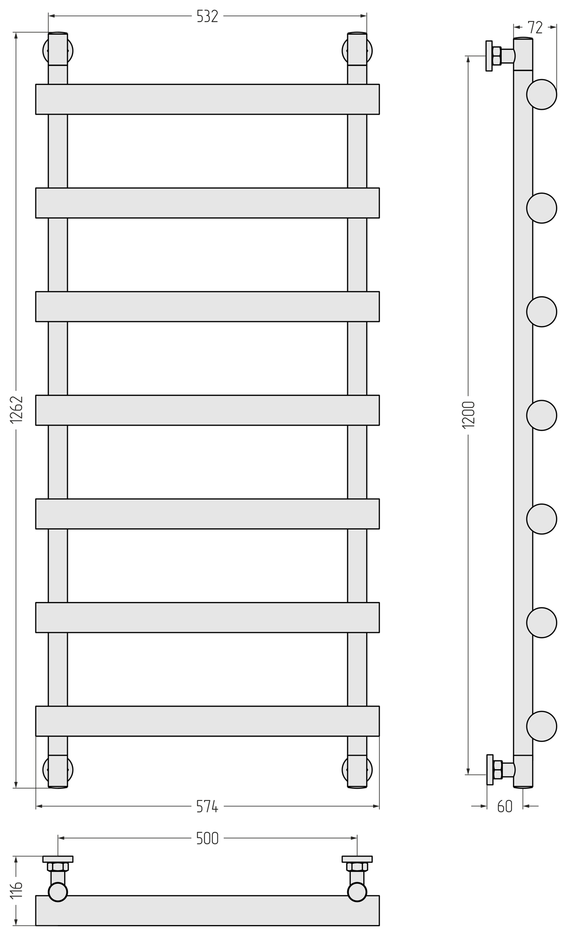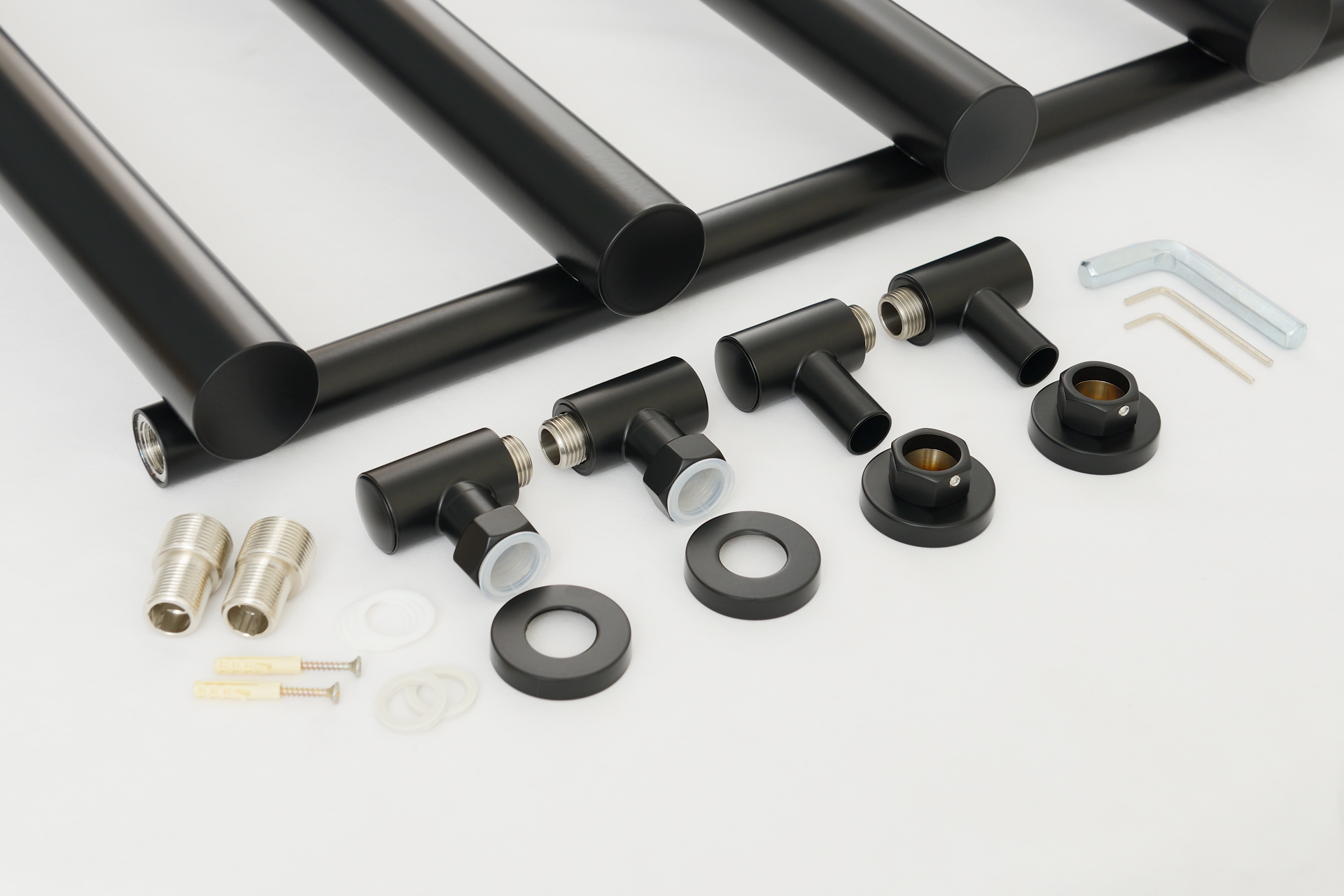 В комплекте есть всё необходимое для нижнего, вертикального и диагонального подключения. Неважно, какой способ подключения вы выберете: внешний вид модели останется неизменным, а угловые элементы – симметричными.