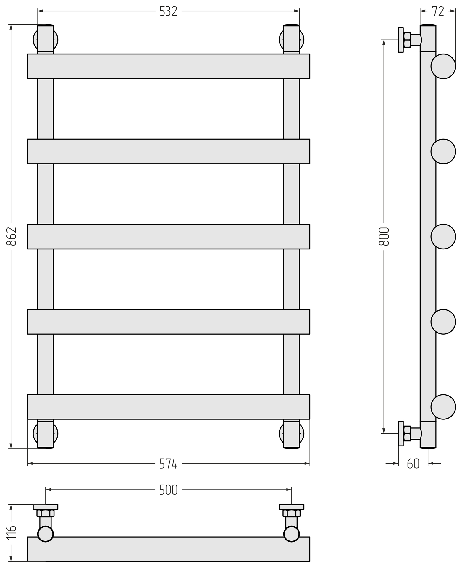 В комплекте есть всё необходимое для нижнего, вертикального и диагонального подключения. Неважно, какой способ подключения вы выберете: внешний вид модели останется неизменным, а угловые элементы – симметричными.