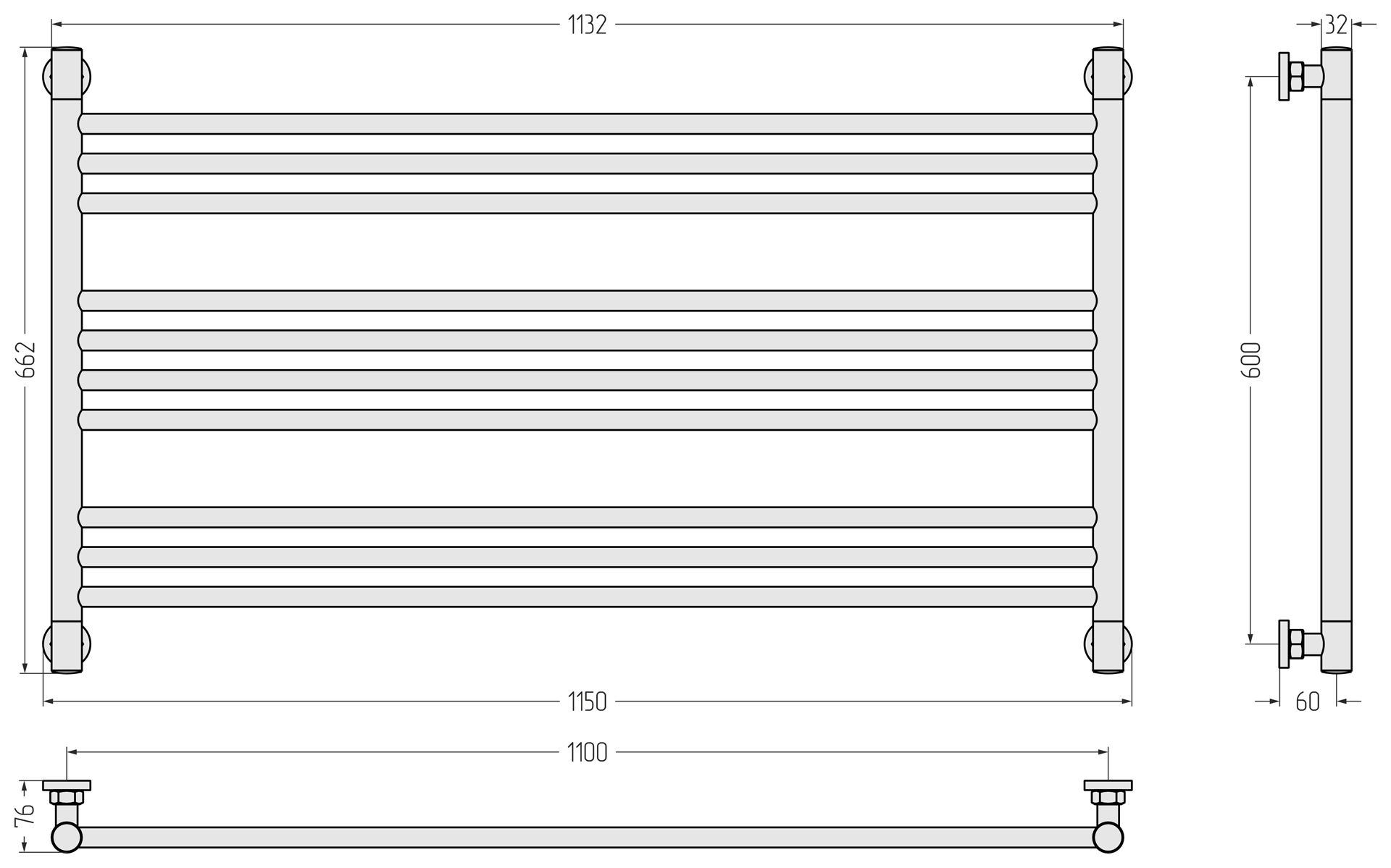 В комплекте есть всё необходимое для нижнего, вертикального и диагонального подключения. Неважно, какой способ подключения вы выберете: внешний вид модели останется неизменным, а угловые элементы – симметричными.