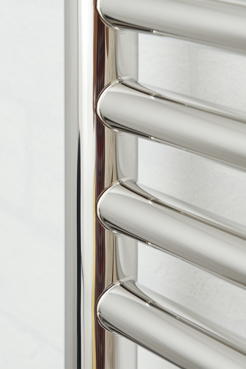 Полотенцесушитель и все комплектующие изготовлены из пищевой нержавеющей стали AISI 304 L. Благодаря низкому содержанию углерода данная марка стали хорошо противостоит окислению, устойчива к коррозии и рекомендована к использованию при высоких температурах.