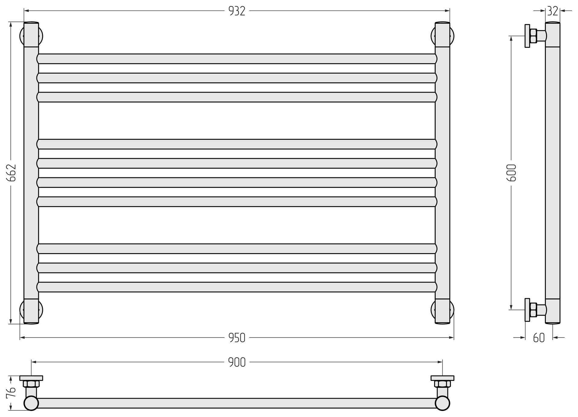 Полотенцесушитель Сунержа Богема L водяной 60х90 00-0202-6090