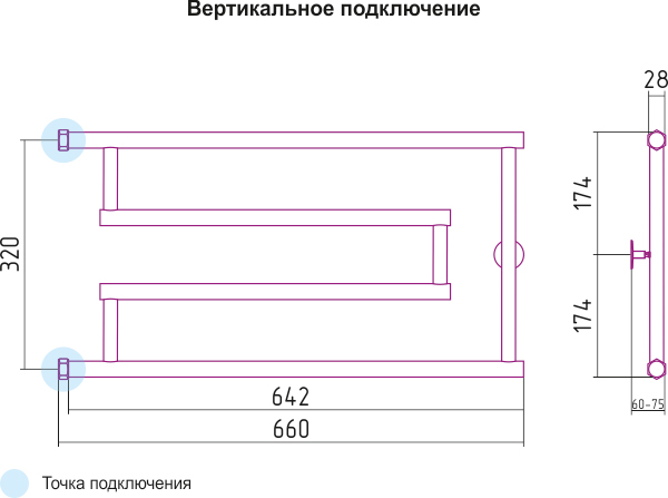 Подключение: вертикальное левое/ правое
