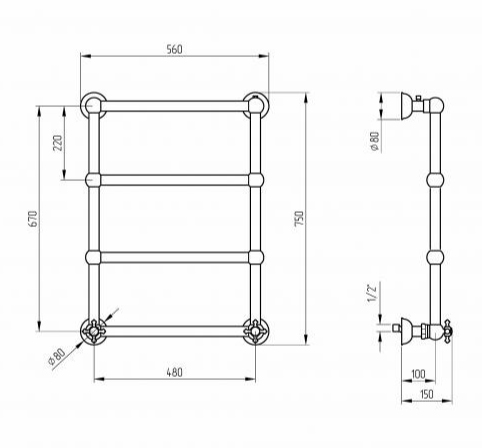 Полотенцесушитель водяной Migliore Colosseum 48х67 20287