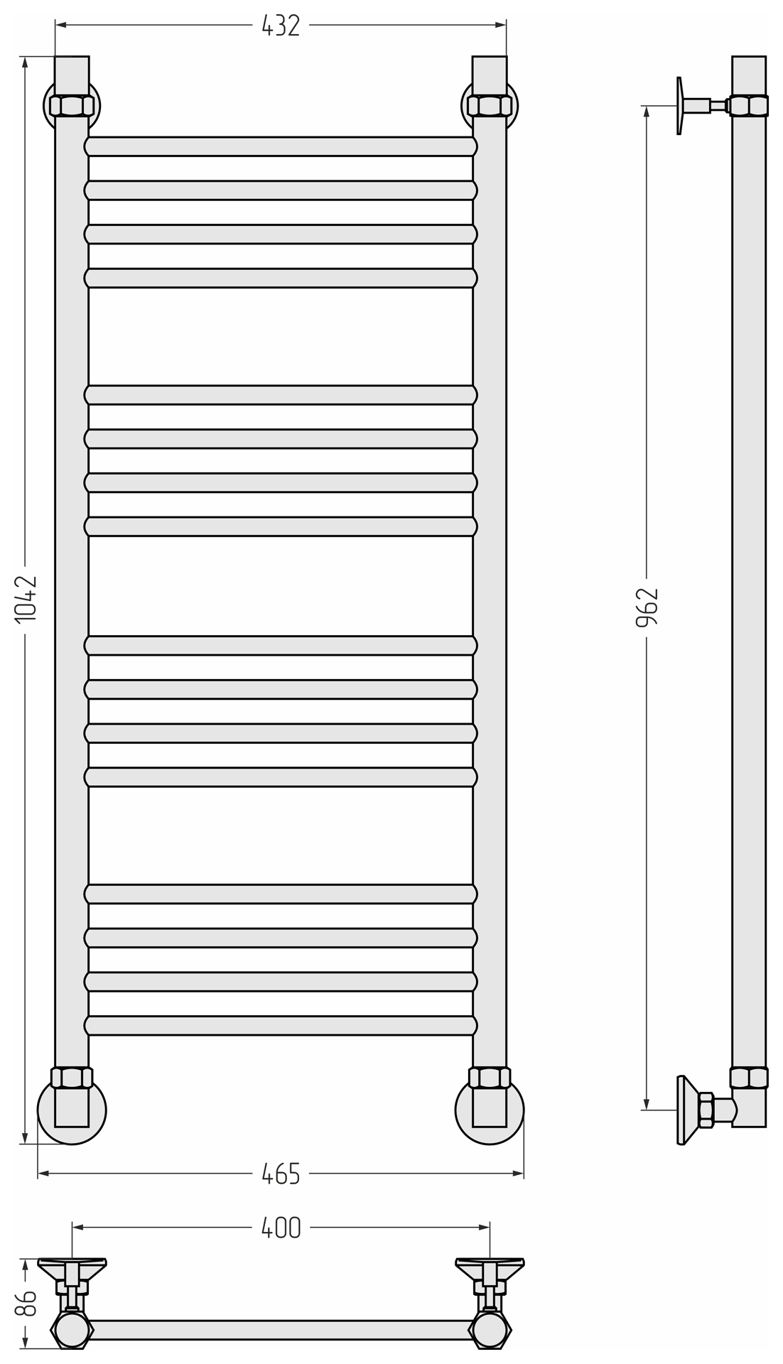 В комплекте есть всё необходимое для установки полотенцесушителя на стену и его подключения к системе горячего водоснабжения.