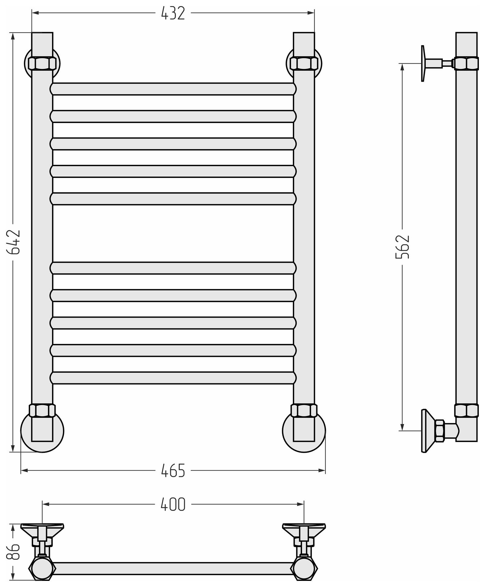 В комплекте есть всё необходимое для установки полотенцесушителя на стену и его подключения к системе горячего водоснабжения.