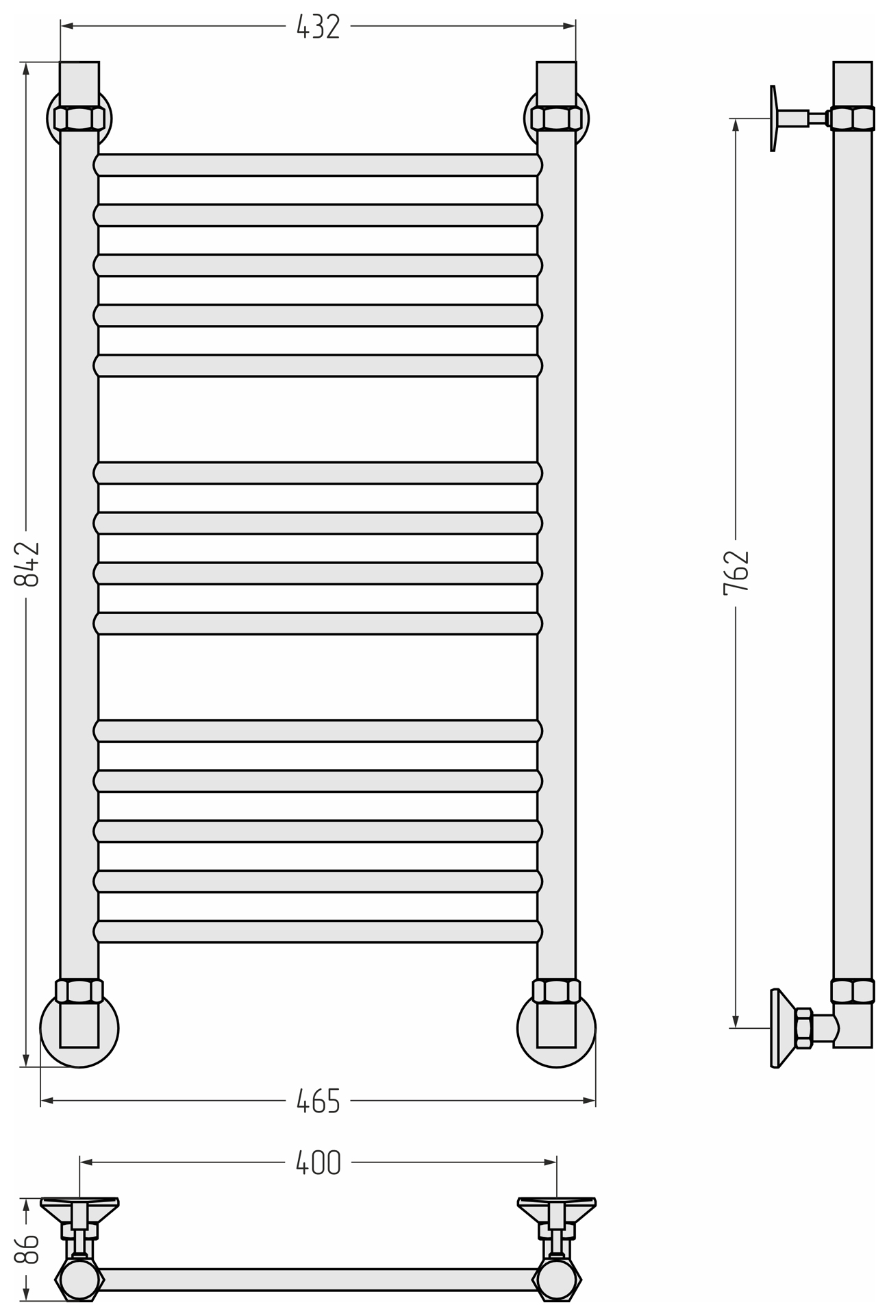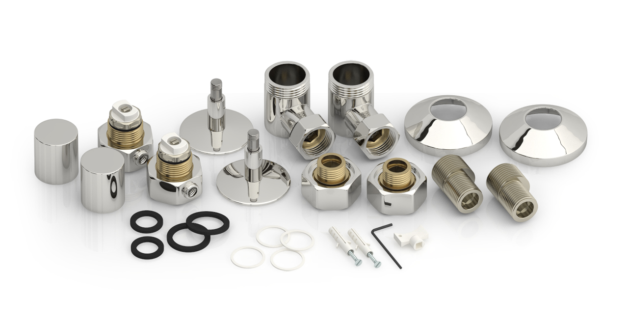 В комплекте есть всё необходимое для установки полотенцесушителя на стену и его подключения к системе горячего водоснабжения.