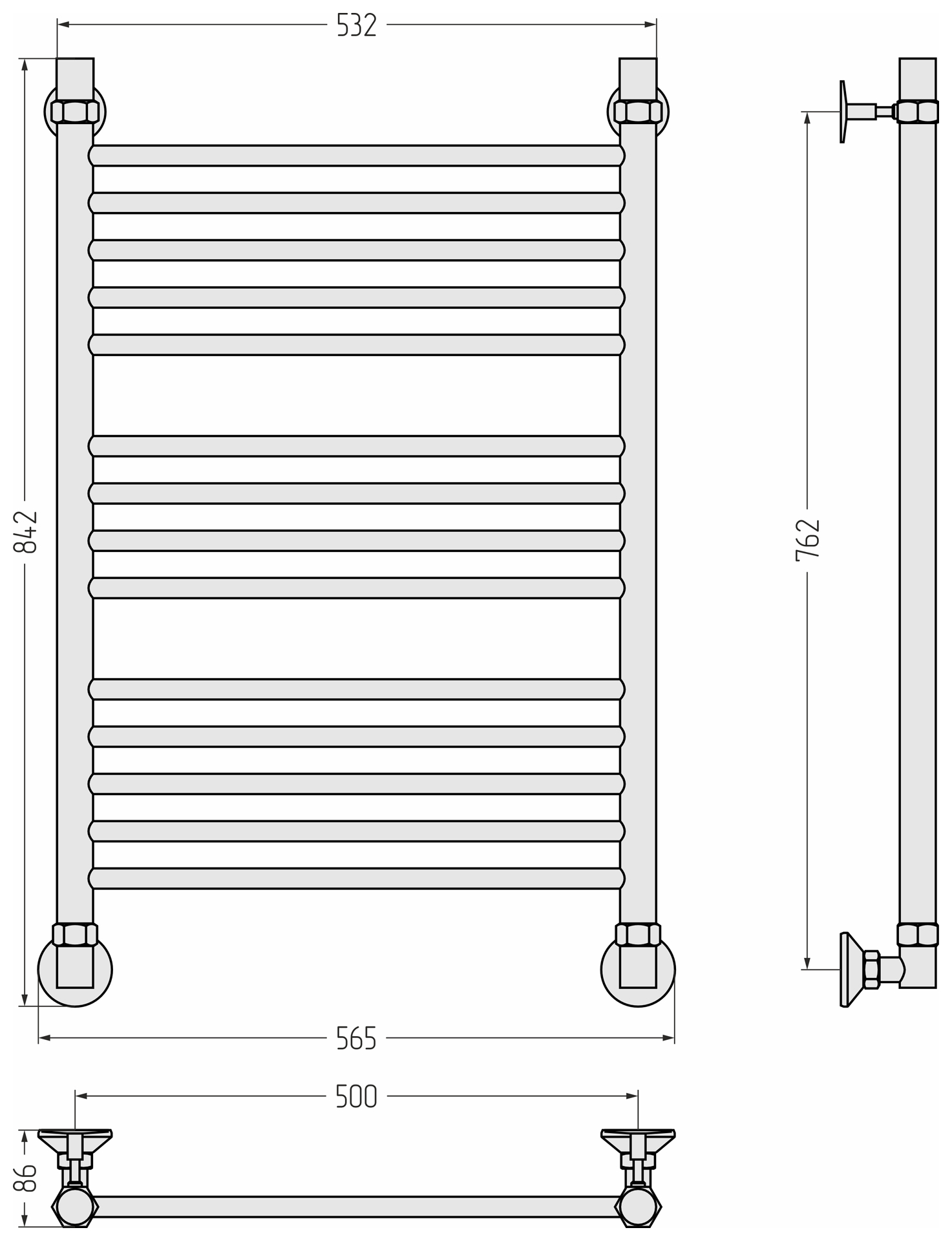 В комплекте есть всё необходимое для установки полотенцесушителя на стену и его подключения к системе горячего водоснабжения.