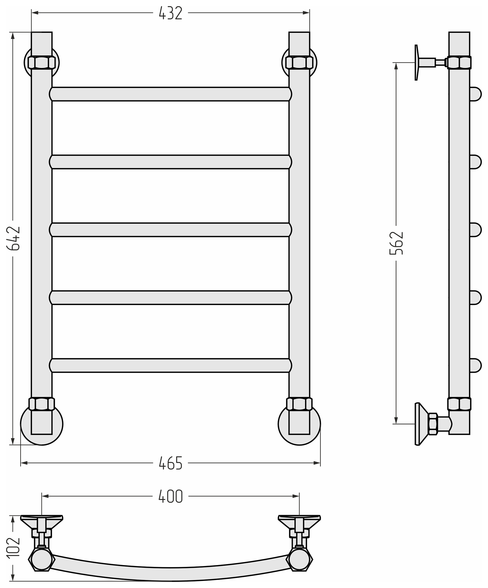 В комплекте есть всё необходимое для установки полотенцесушителя на стену и его подключения к системе горячего водоснабжения.