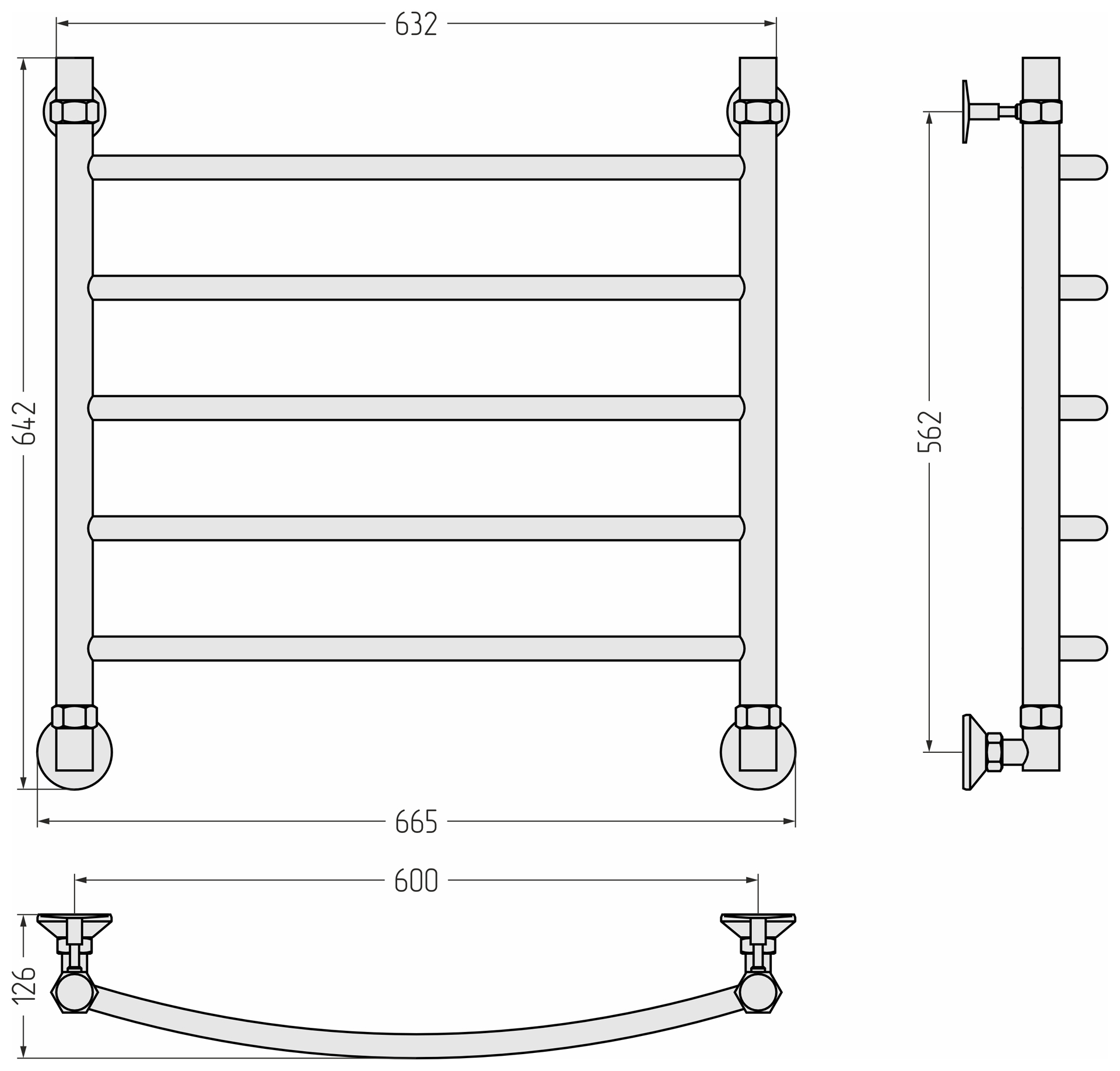 В комплекте есть всё необходимое для установки полотенцесушителя на стену и его подключения к системе горячего водоснабжения.