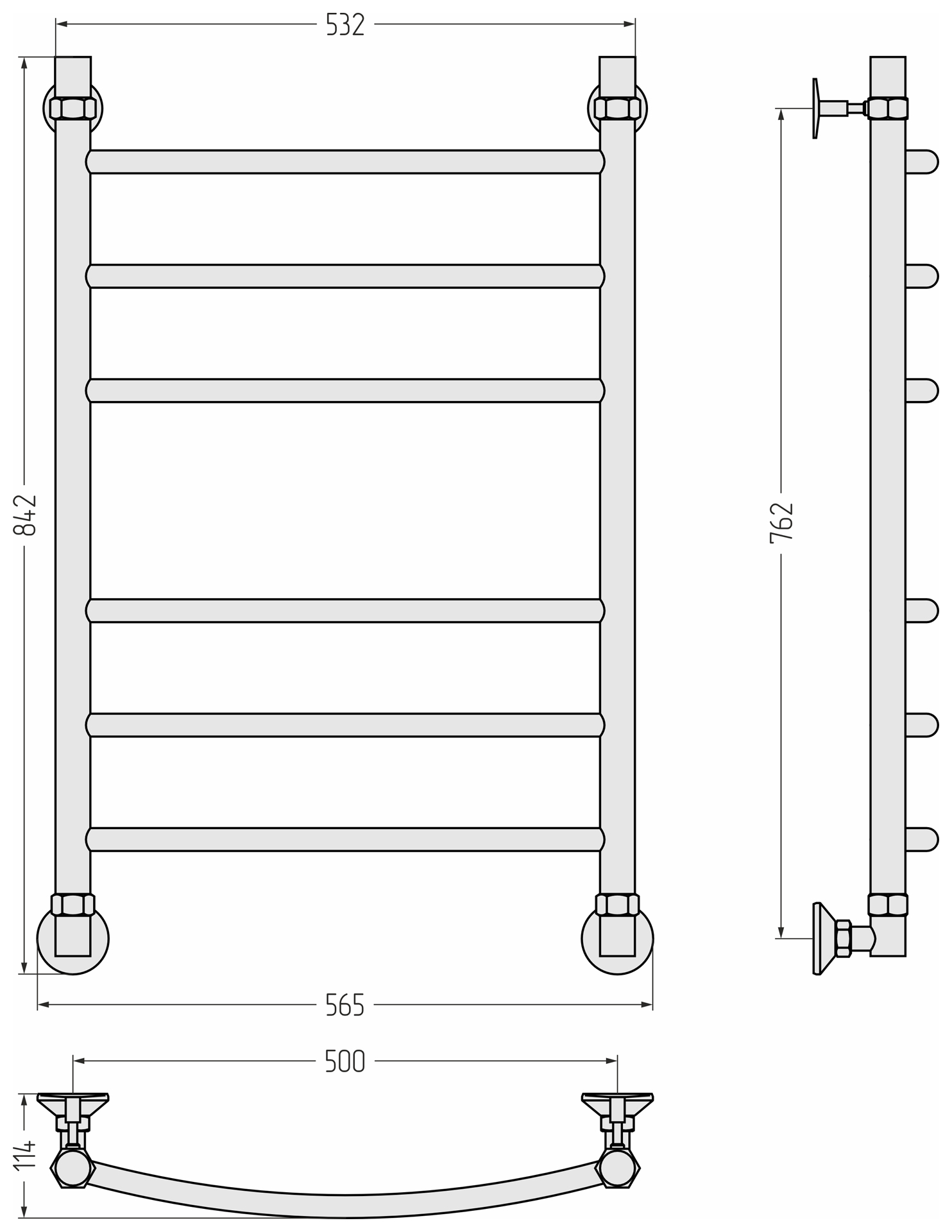 В комплекте есть всё необходимое для установки полотенцесушителя на стену и его подключения к системе горячего водоснабжения.