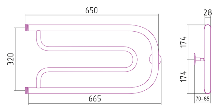 Полотенцесушитель водяной Стилье Дуэт 32х65 00010-3265