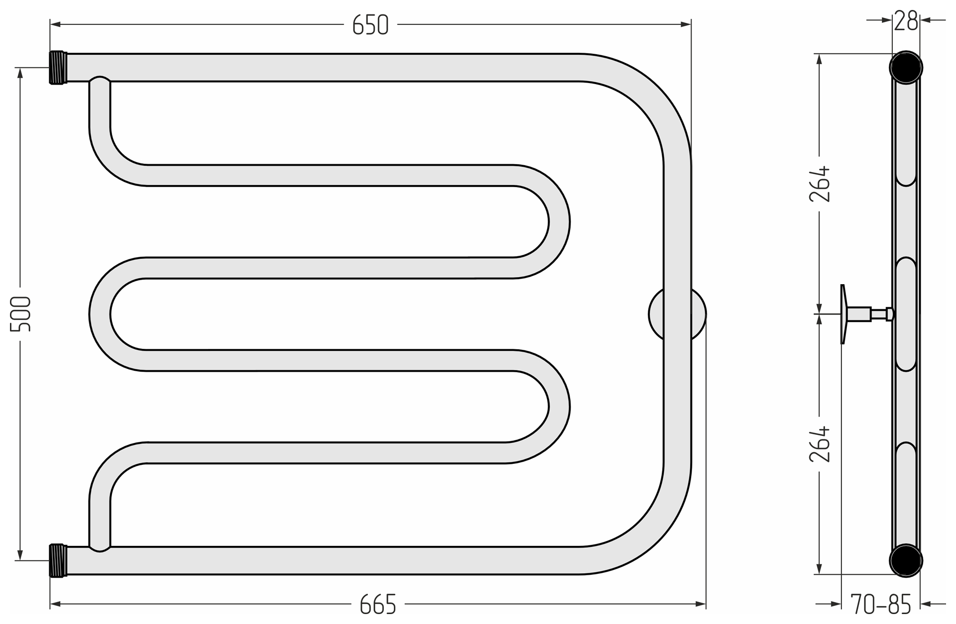 Полотенцесушитель водяной Стилье Тандем 50х65 резьба-cгон 1" 00011-5065