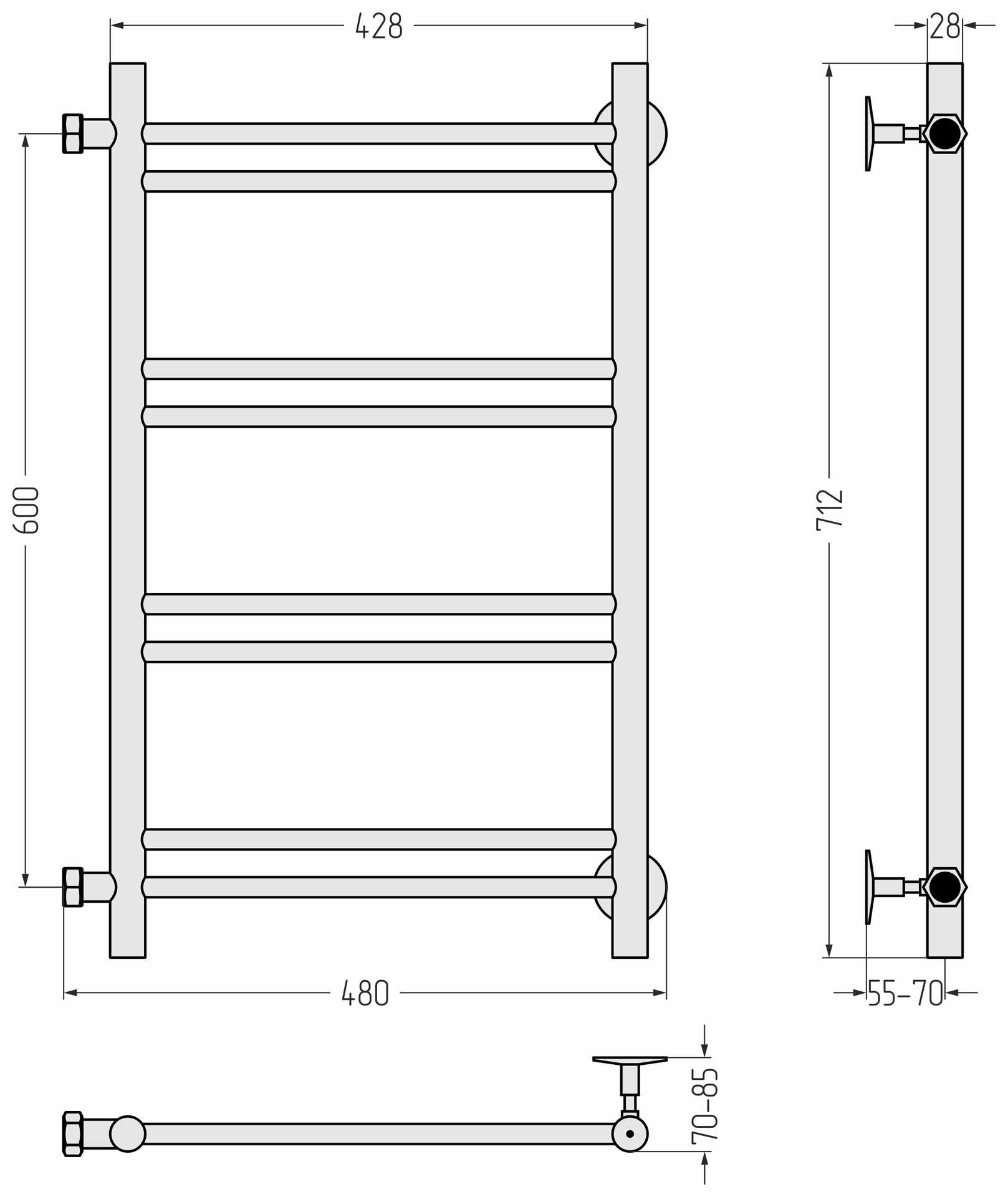 - Полотенцесушитель упакован в полиэтиленовый пакет и коробку из гофрокартона
