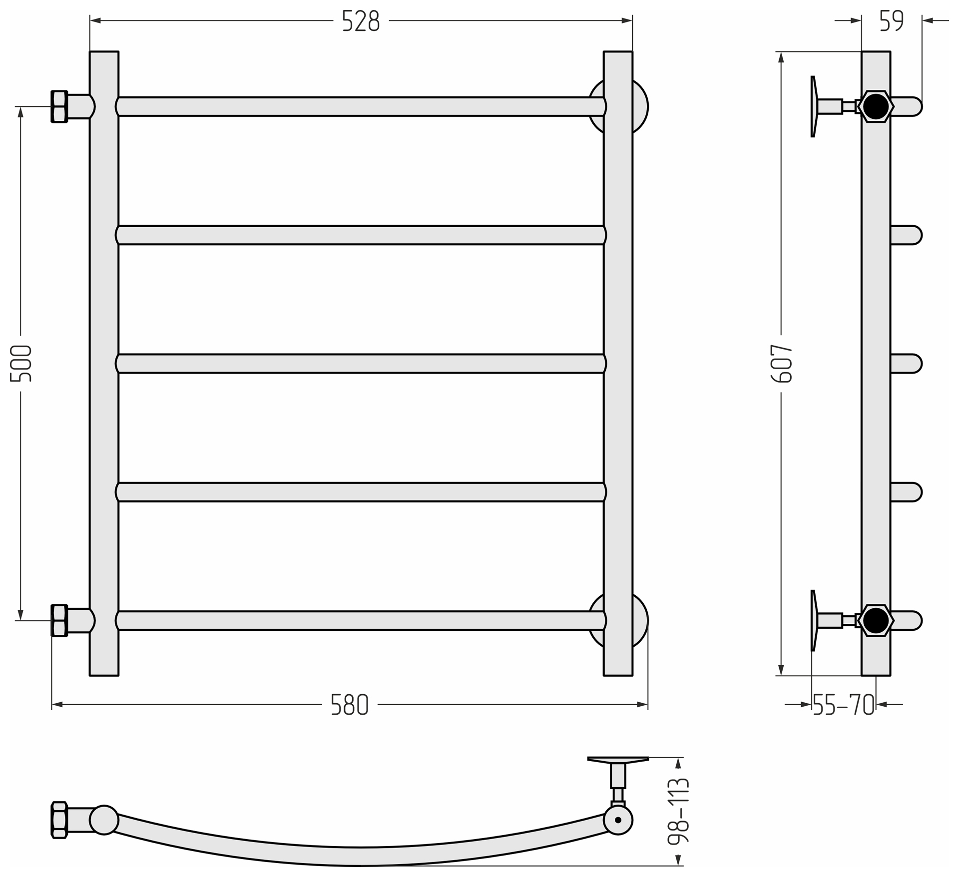 - Полотенцесушитель упакован в полиэтиленовый пакет и коробку из гофрокартона.