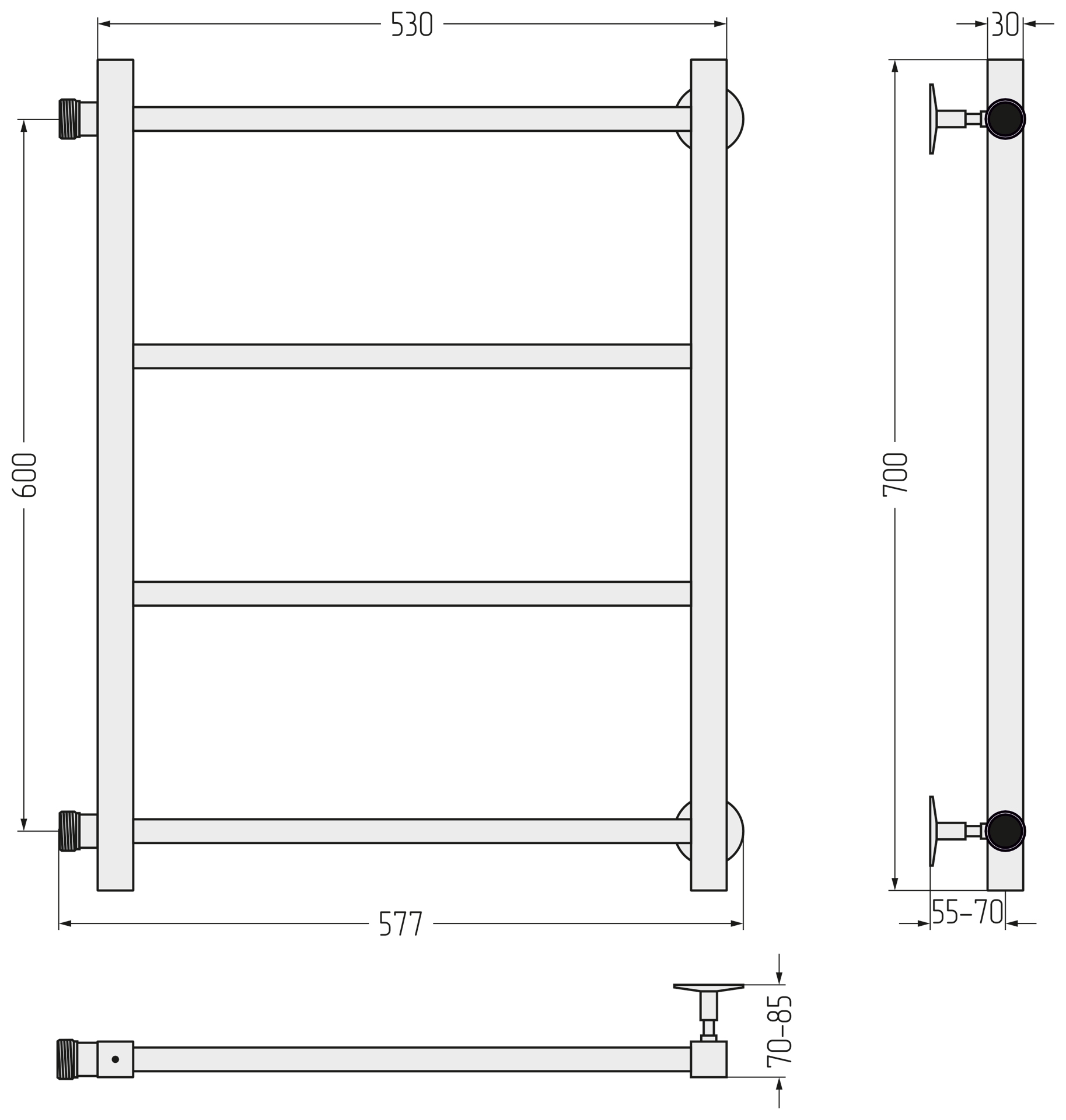 - Полотенцесушитель упакован в полиэтиленовый пакет и коробку из гофрокартона.