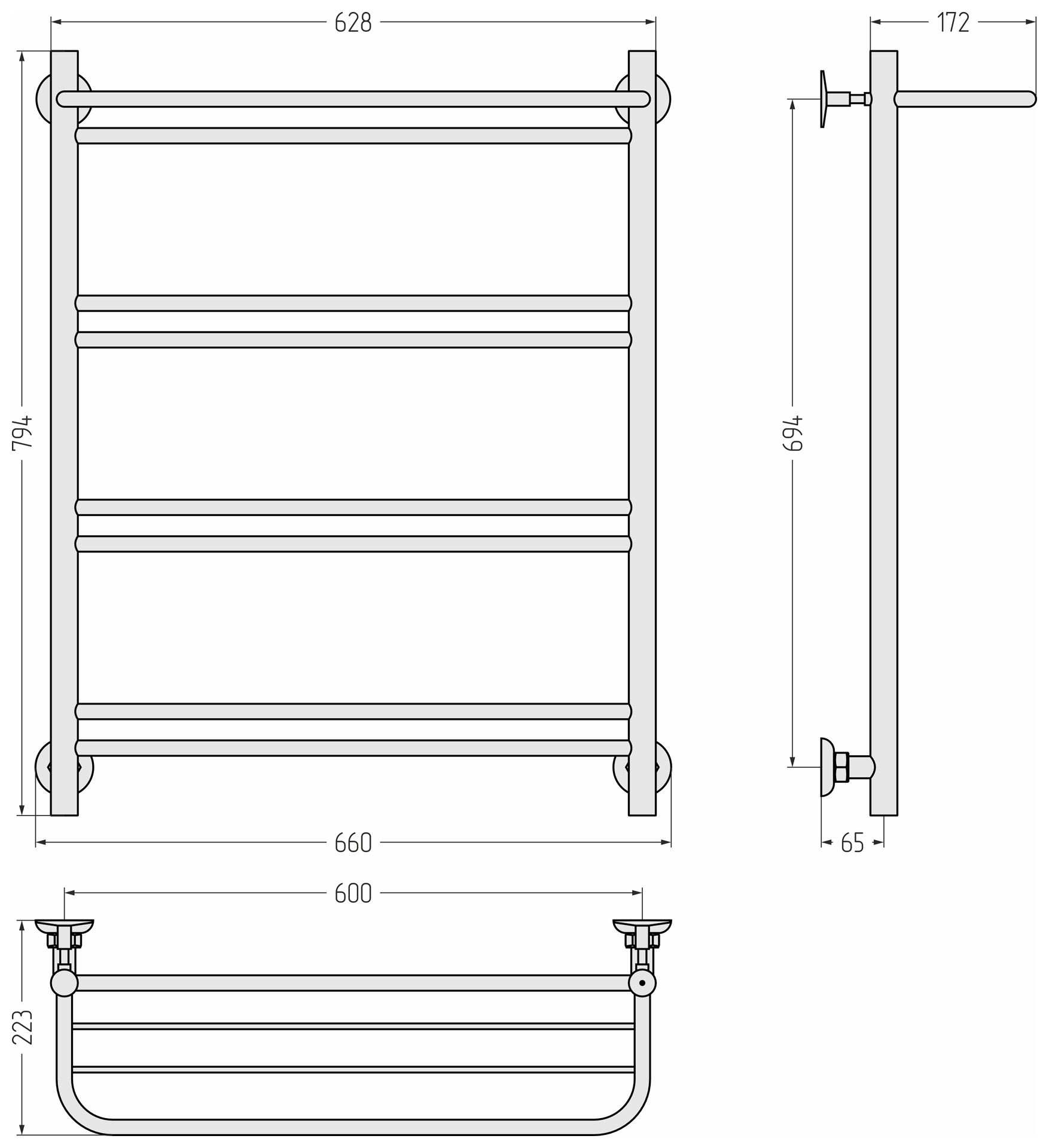 Полотенцесушитель водяной Стилье Версия-Н1 80х60 черный 17621-8060