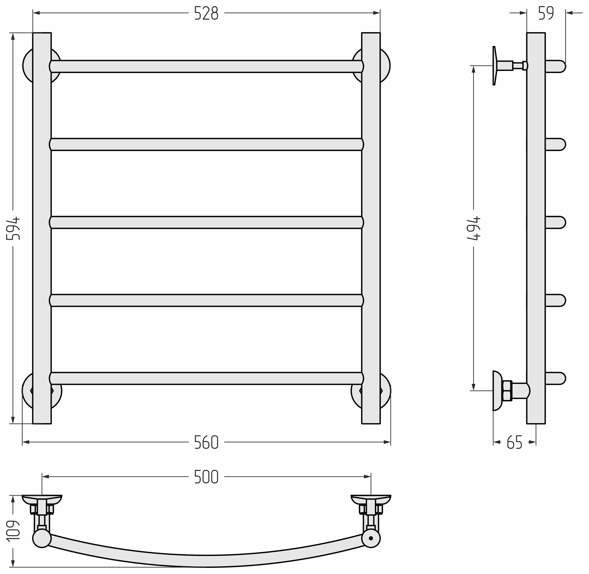 Полотенцесушитель водяной Стилье Версия-Н2 60х50 черный 17622-6050