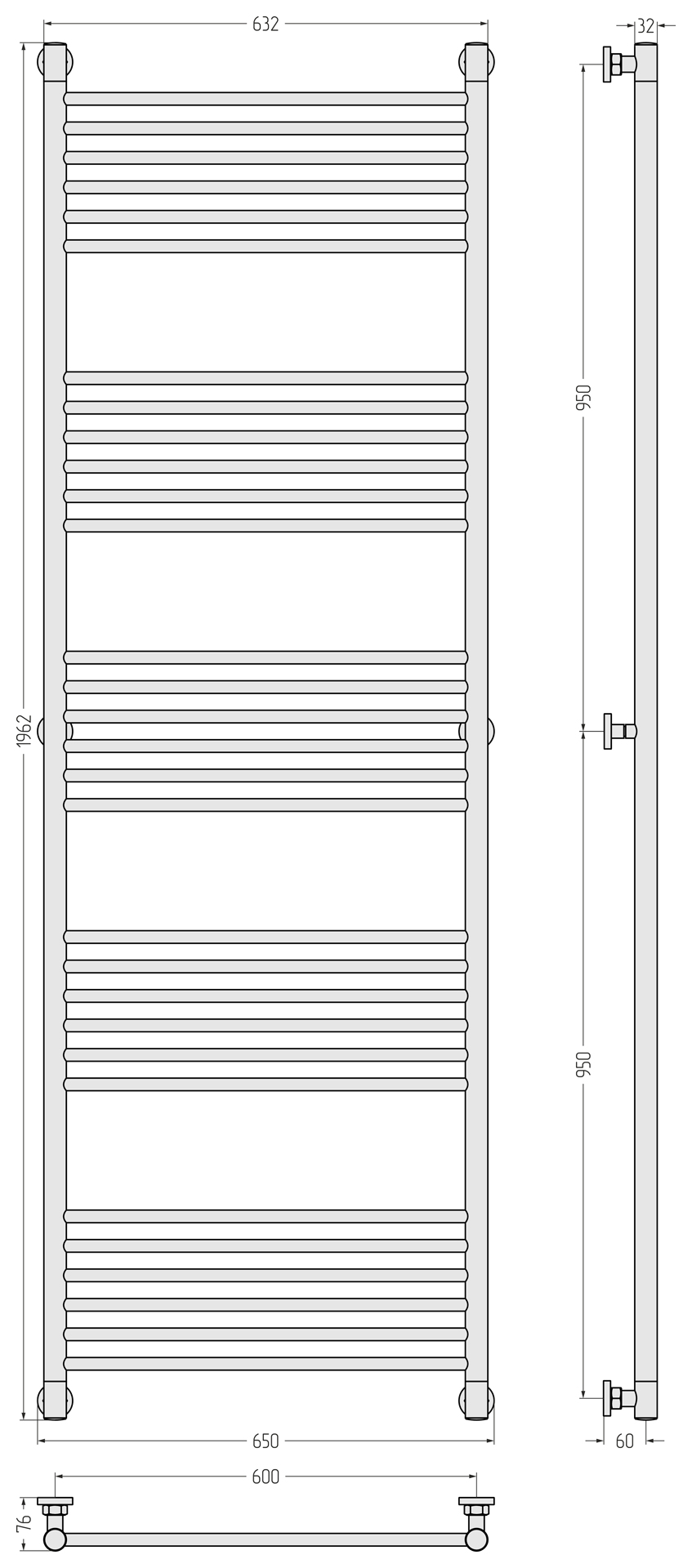 Полотенцесушитель водяной Сунержа Богема+ (прямая) 190х60 00-0220-1960