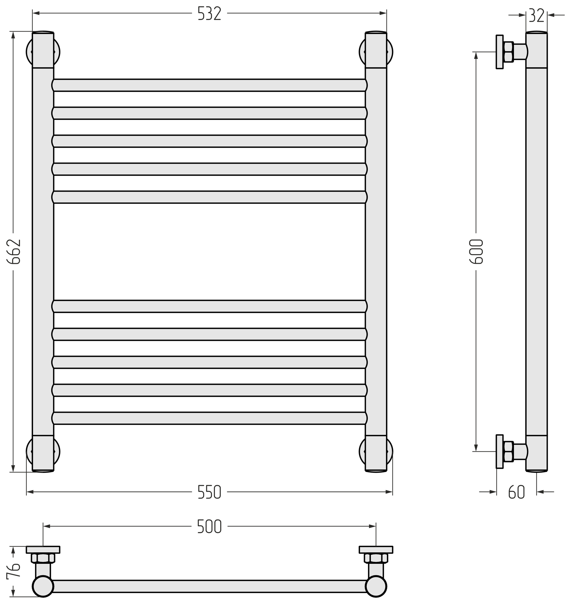 Полотенцесушитель водяной Сунержа Богема+ (прямая) 60х50 00-0220-6050