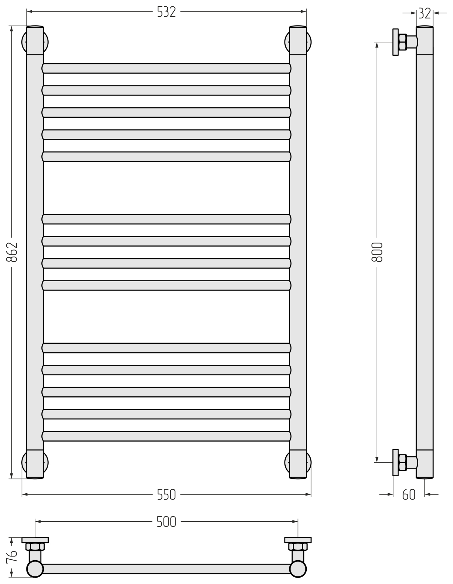 В комплекте есть всё необходимое для нижнего, вертикального и диагонального подключения. Неважно, какой способ подключения вы выберете: внешний вид модели останется неизменным, а угловые элементы – симметричными.