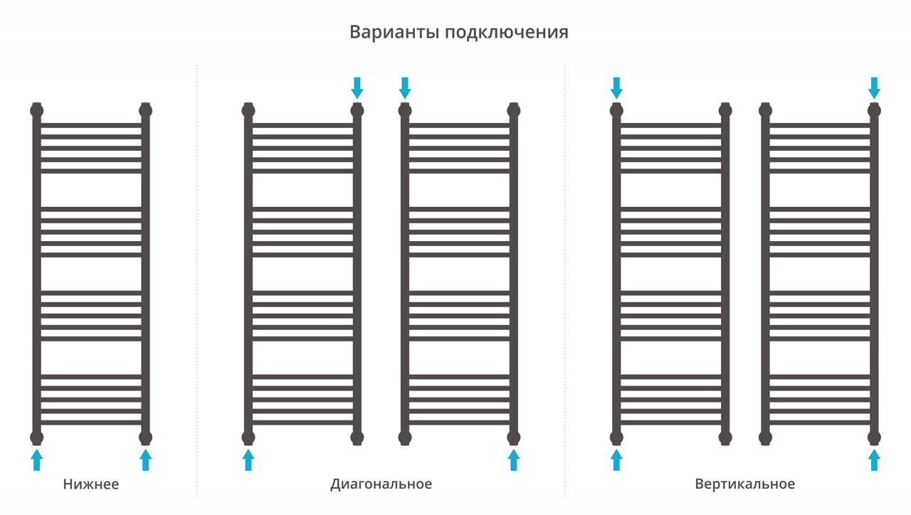 Подключение: диагональное/ нижнее/ вертикальное