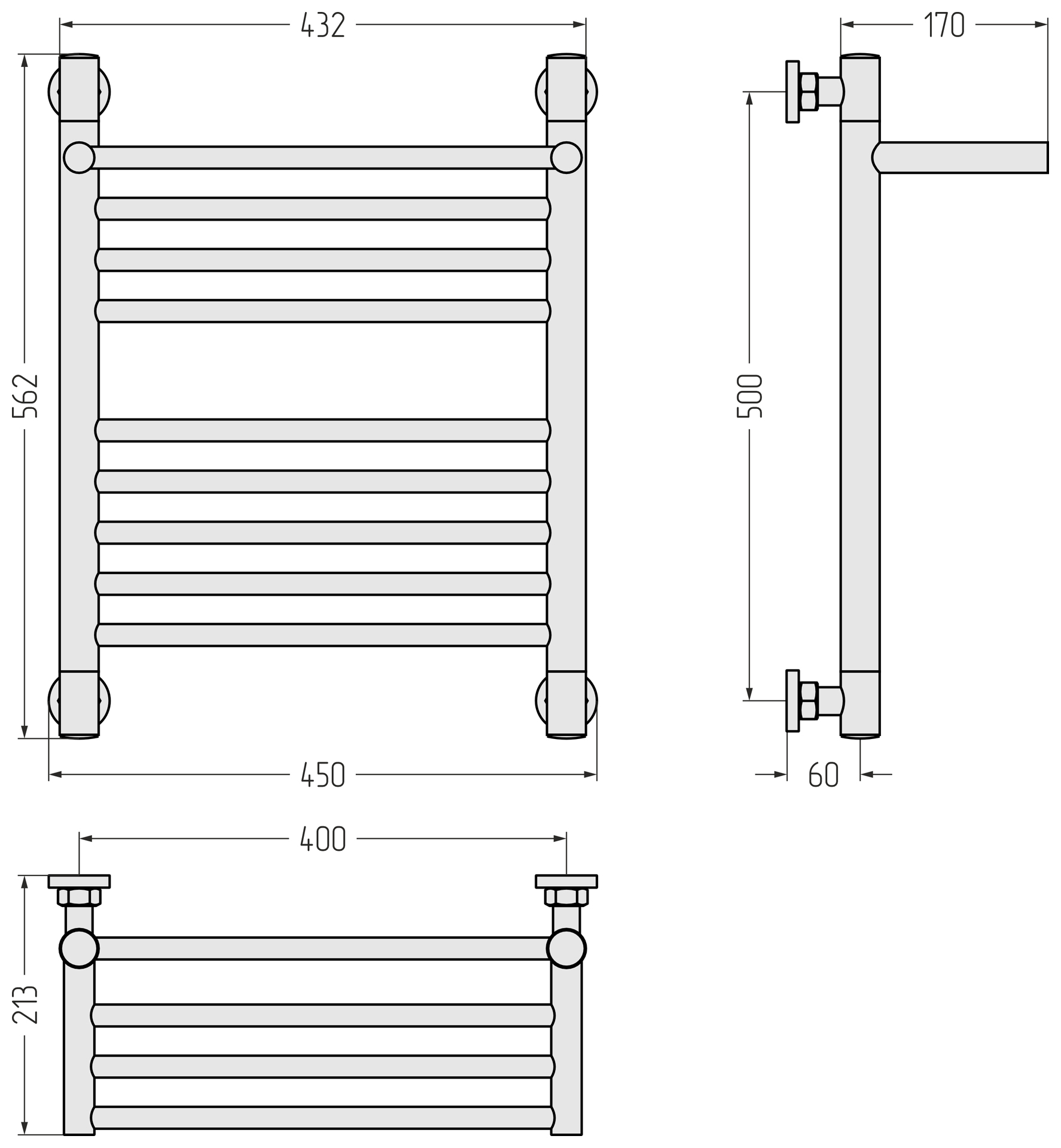 В комплекте есть всё необходимое для нижнего, вертикального и диагонального подключения. Неважно, какой способ подключения вы выберете: внешний вид модели останется неизменным, а угловые элементы – симметричными.