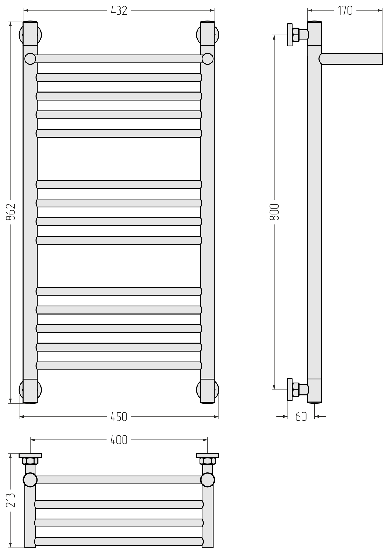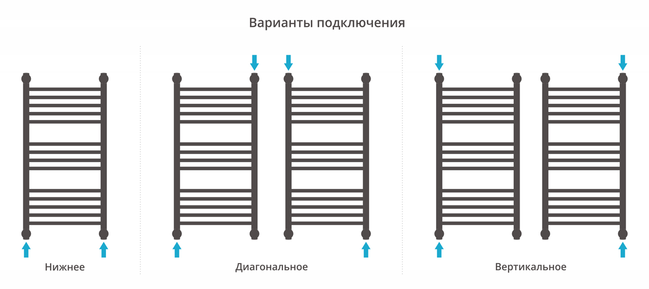 В комплекте есть всё необходимое для нижнего, вертикального и диагонального подключения. Неважно, какой способ подключения вы выберете: внешний вид модели останется неизменным, а угловые элементы – симметричными.