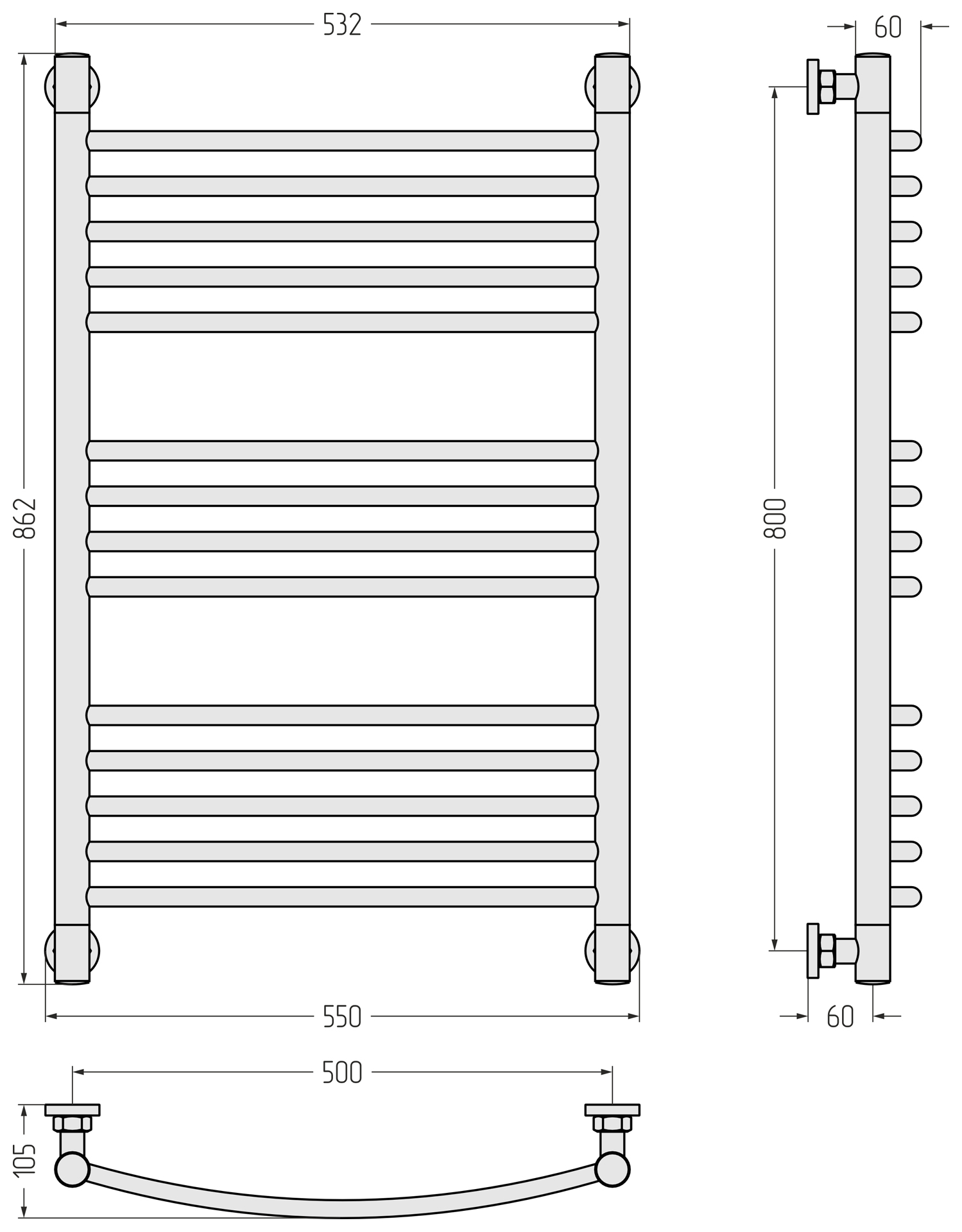 Полотенцесушитель водяной Сунержа Богема+ (выгнутая) 80х50 00-0221-8050