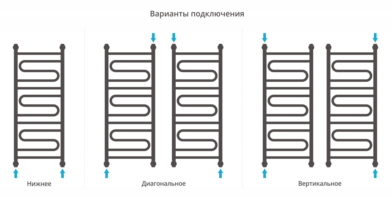 В комплекте есть всё необходимое для нижнего, вертикального и диагонального подключения. Неважно, какой способ подключения вы выберете: внешний вид модели останется неизменным, а угловые элементы – симметричными.