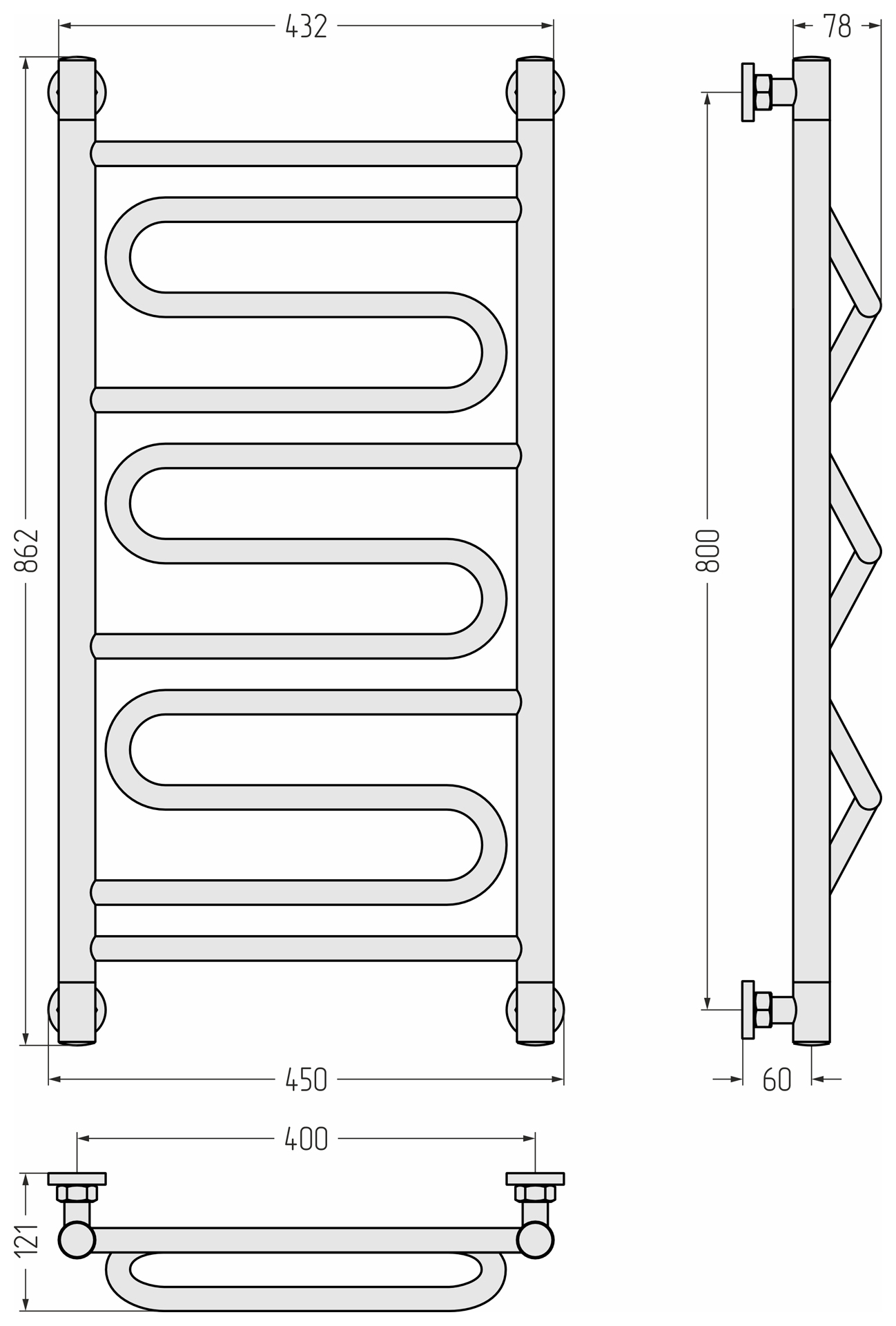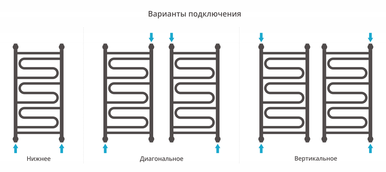 В комплекте есть всё необходимое для нижнего, вертикального и диагонального подключения. Неважно, какой способ подключения вы выберете: внешний вид модели останется неизменным, а угловые элементы – симметричными.