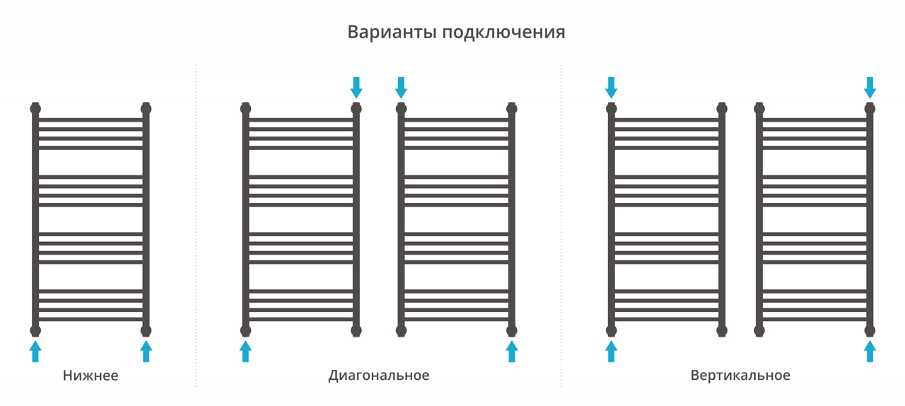 В комплекте есть всё необходимое для нижнего, вертикального и диагонального подключения. Неважно, какой способ подключения вы выберете: внешний вид модели останется неизменным, а угловые элементы – симметричными.