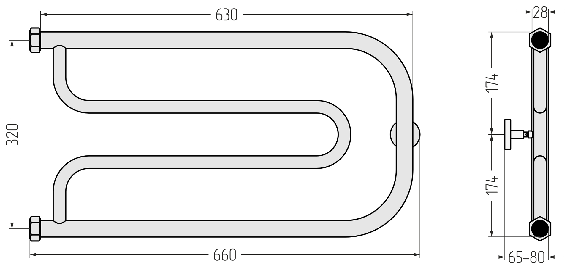 Полотенцесушитель водяной Сунержа Гусли+ 32х65 (без полки) 00-4009-3265