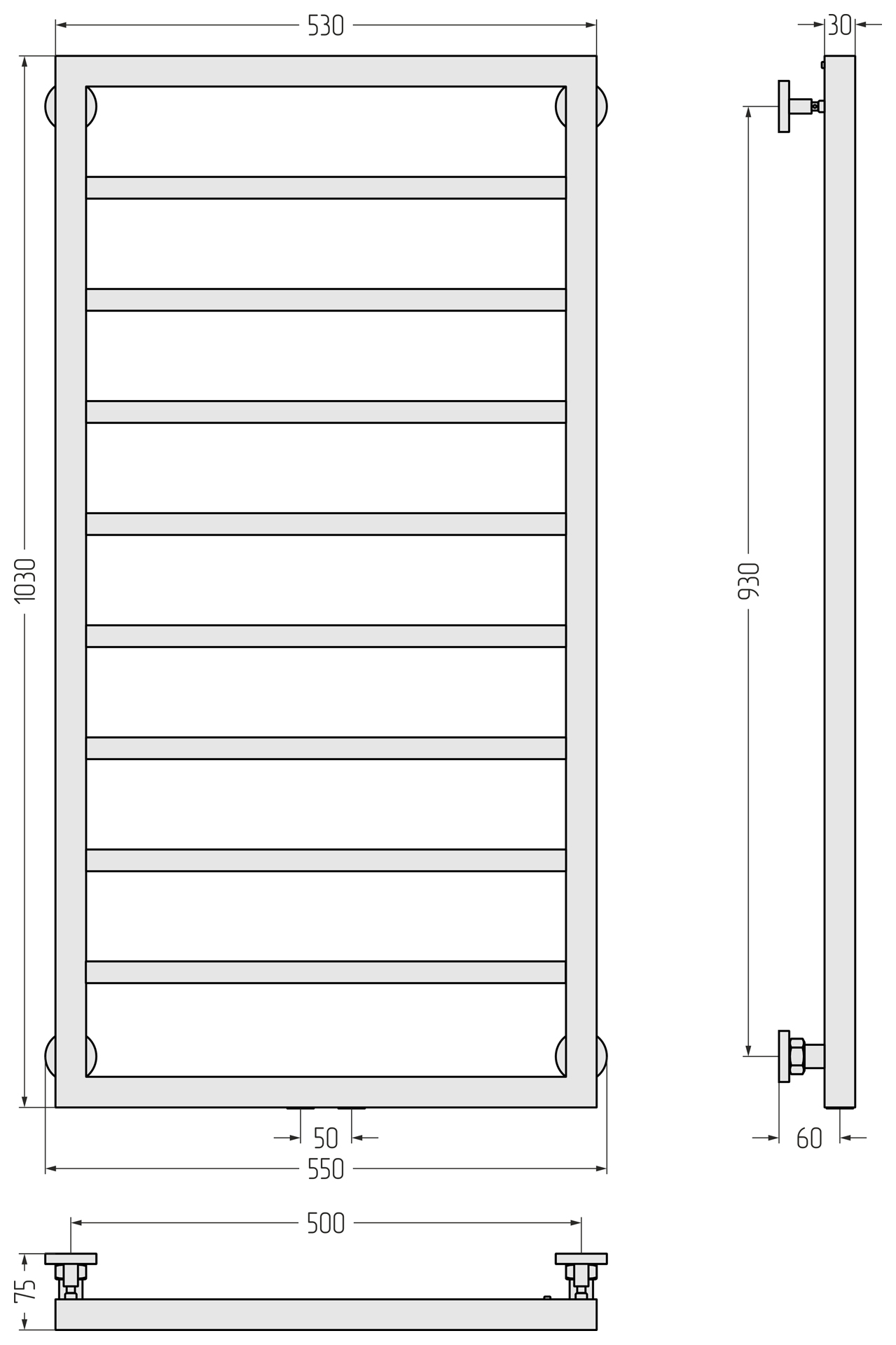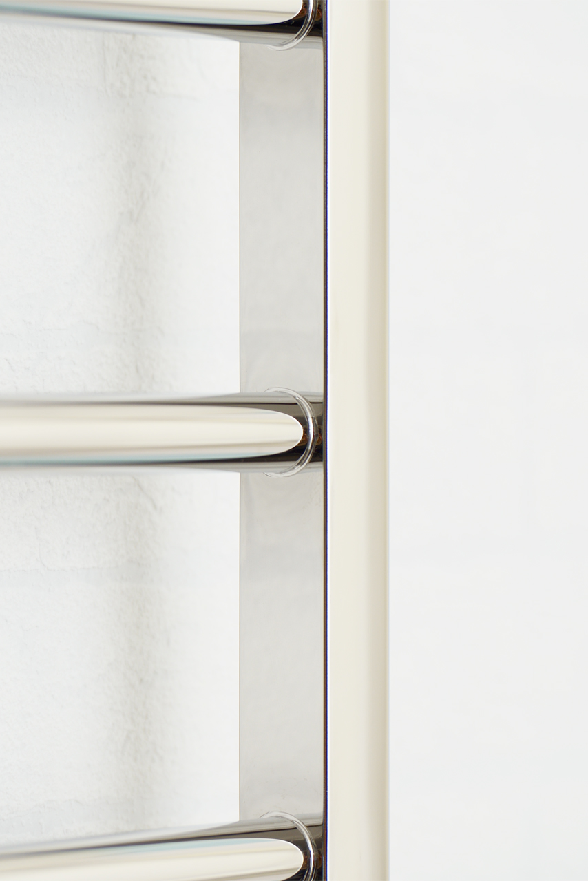 Полотенцесушитель и все комплектующие изготовлены из пищевой нержавеющей стали AISI 304 L. Благодаря низкому содержанию углерода данная марка стали хорошо противостоит окислению, устойчива к коррозии и рекомендована к использованию при высоких температурах.