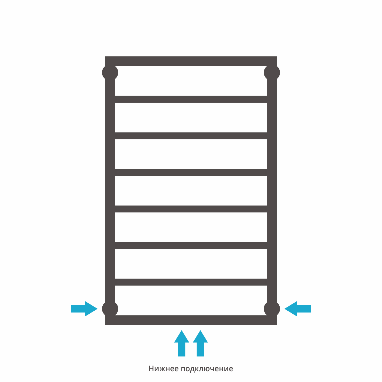 На внутреннюю поверхность полотенцесушителя нанесено специальное полимерное покрытие, устраняющее контакт воды с металлом. Данная модель надёжно защищена от блуждающих токов, а гарантия на неё длится 10 лет.