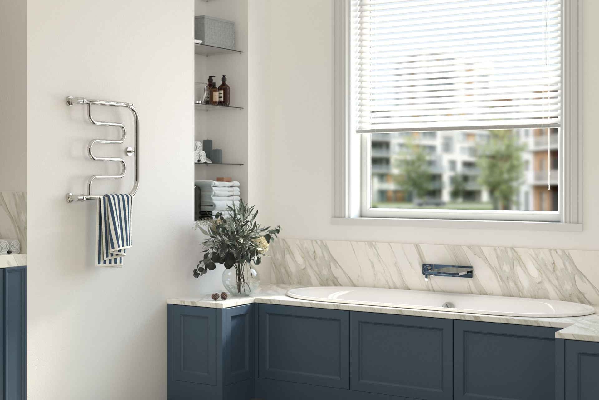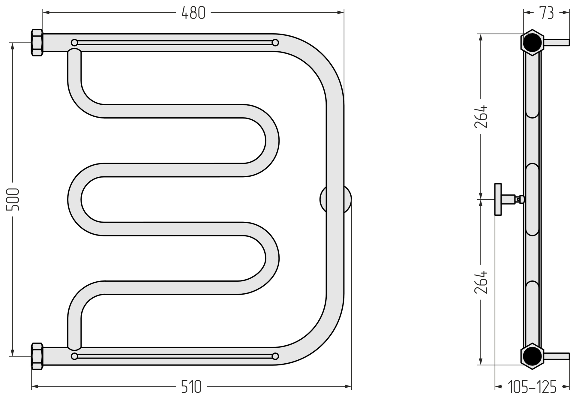 В комплекте есть всё необходимое для вертикального подключения полотенцесушителя к магистрали горячего водоснабжения. Дополнительные комплектующие потребуются только в случае необходимости вертикального углового подключения «в стену».
