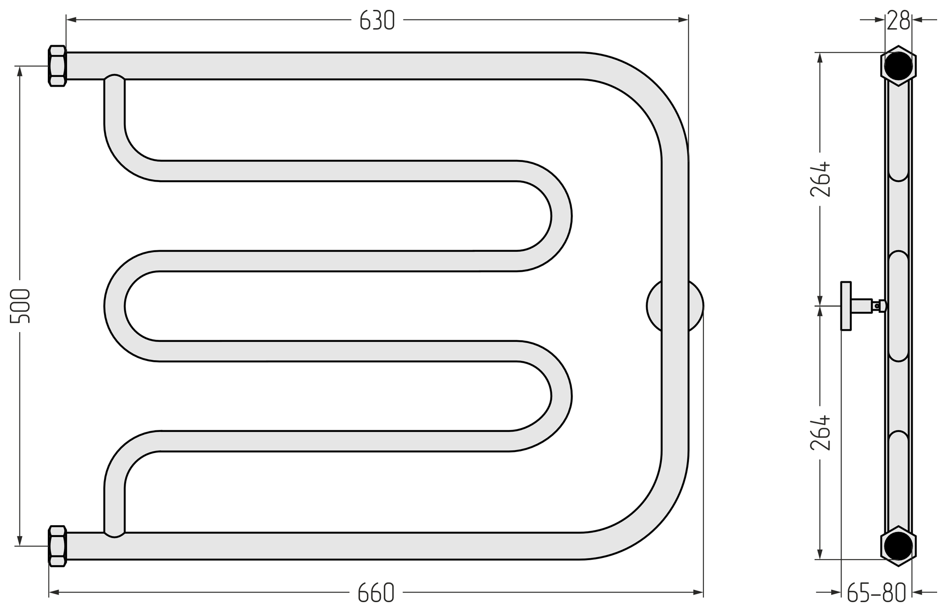 Полотенцесушитель водяной Сунержа Лира 50х65 (без полки) 00-0011-5065