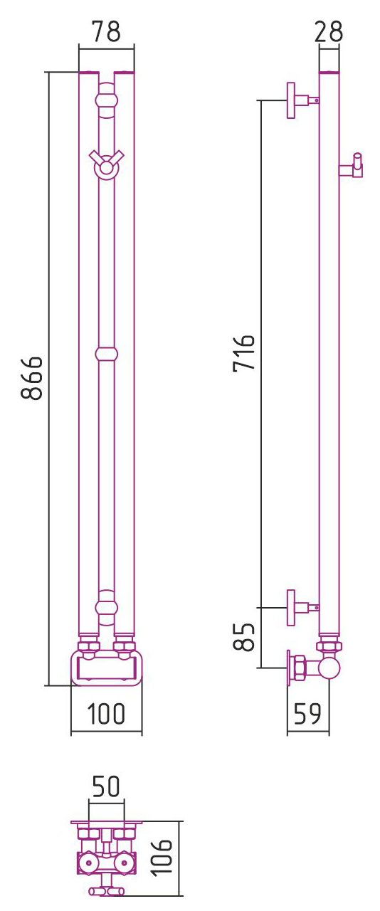 Полотенцесушитель водяной Сунержа Нюанс EU50+ 84х5 00-0212-0840