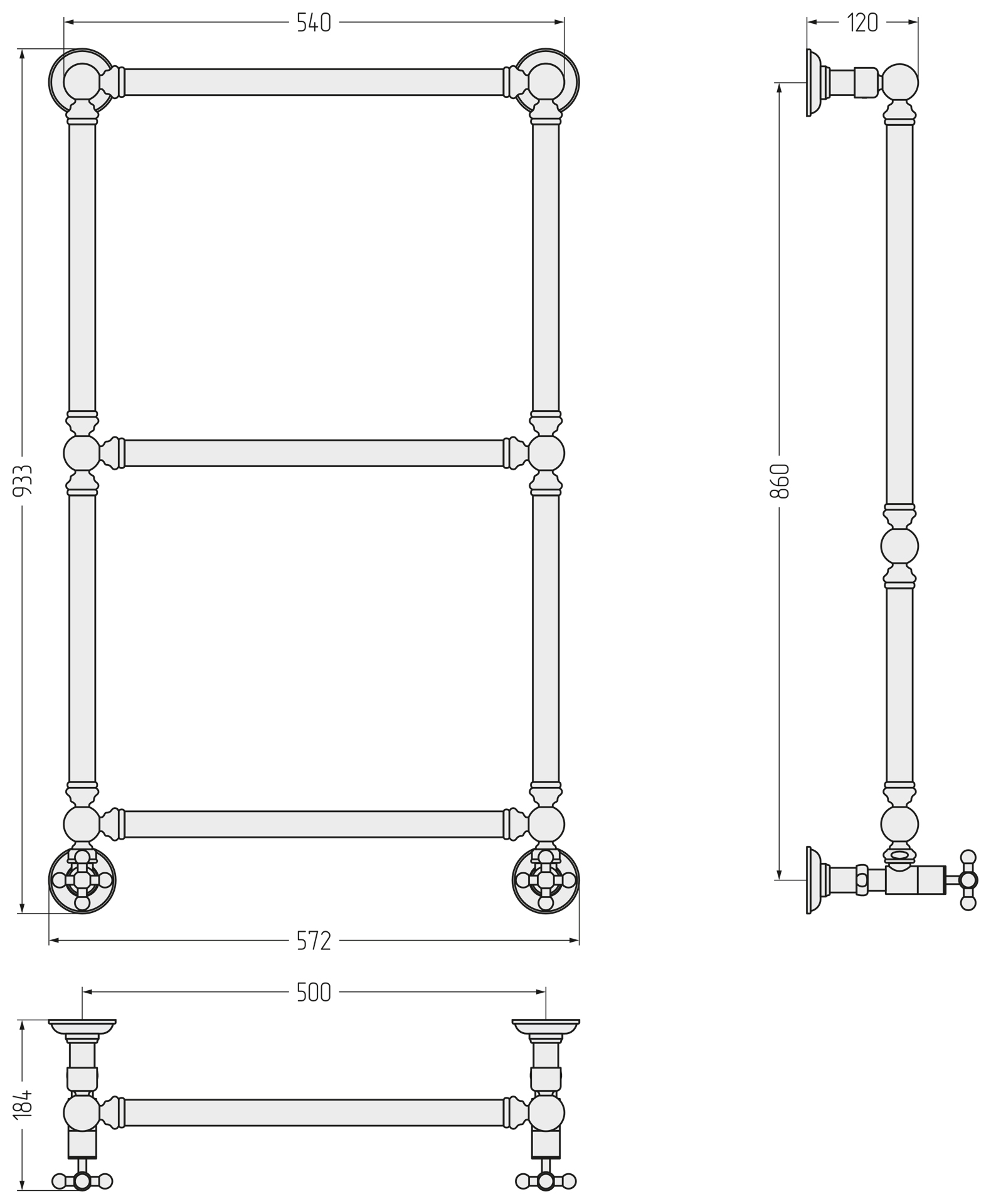 В комплекте есть всё необходимое для нижнего подключения полотенцесушителя «в стену». Запорно-регулирующие вентили выполнены в едином стиле с полотенцесушителем и также входят в стандартную комплектацию.