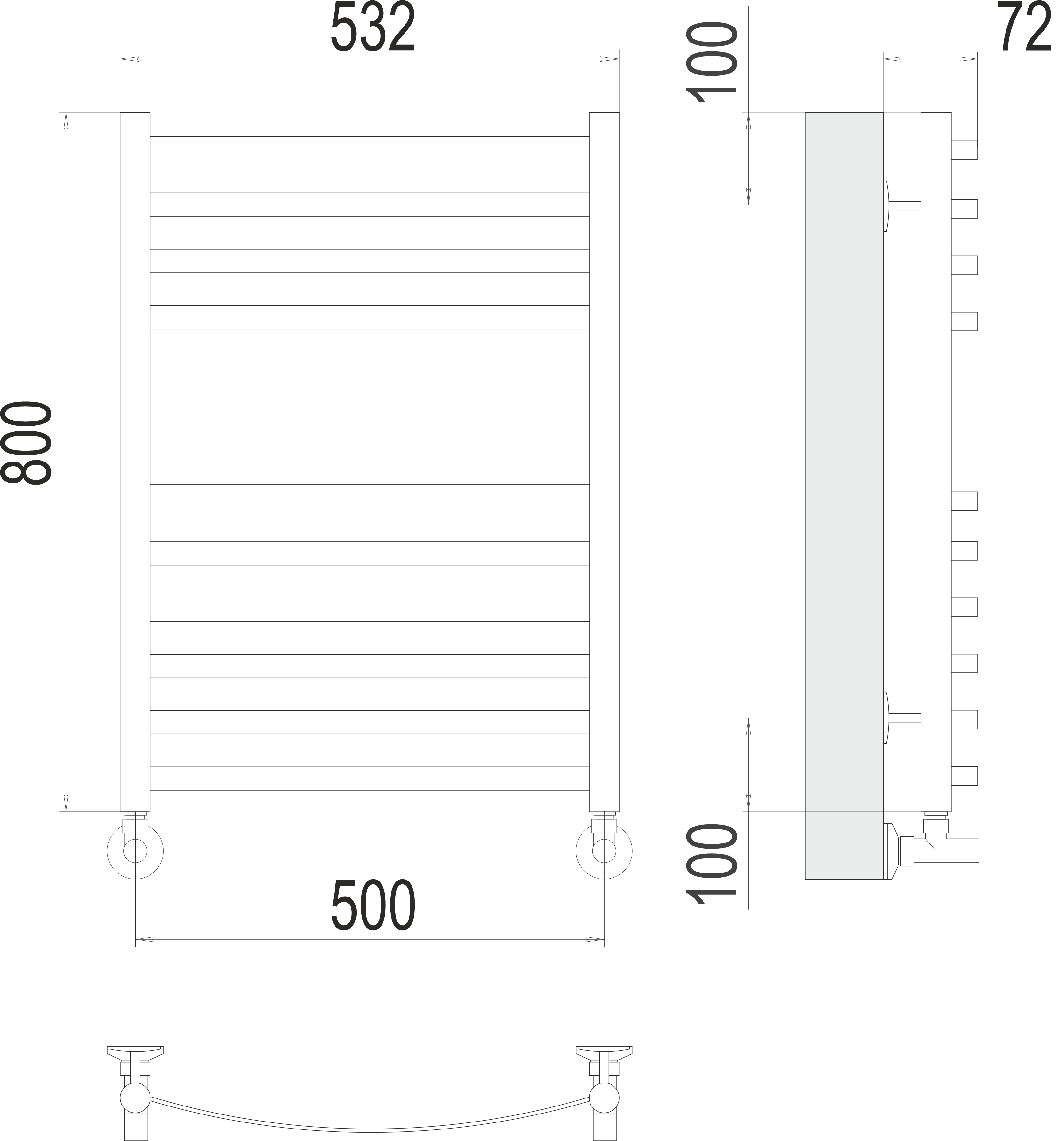 Все изделия серии Terminus "Люкс" укомплектованы фитингами (вентили, эксцентрики, отражатели) и готовы для подключения к системе ГВС.