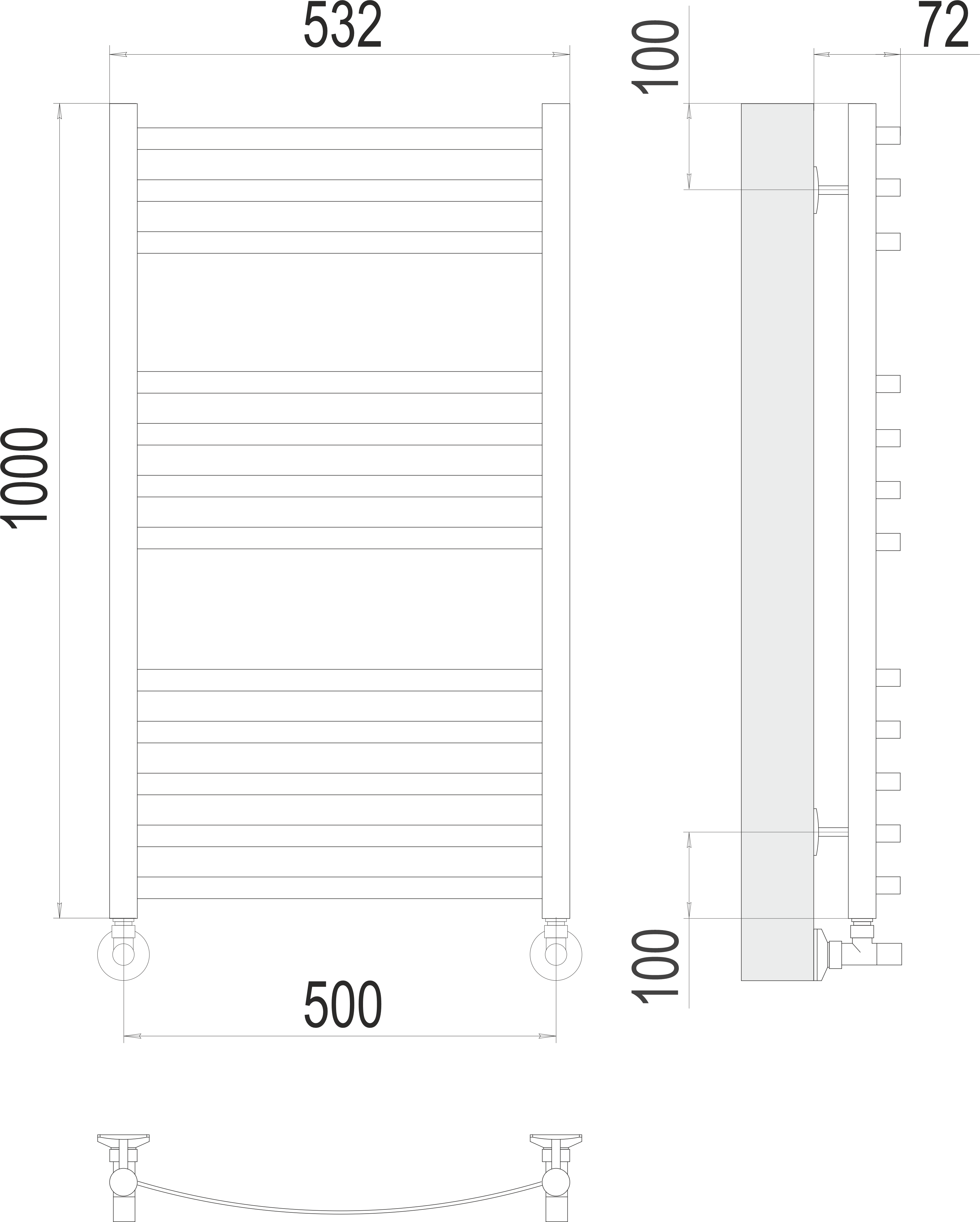 Все изделия серии Terminus "Люкс" укомплектованы фитингами (вентили, эксцентрики, отражатели) и готовы для подключения к системе ГВС.