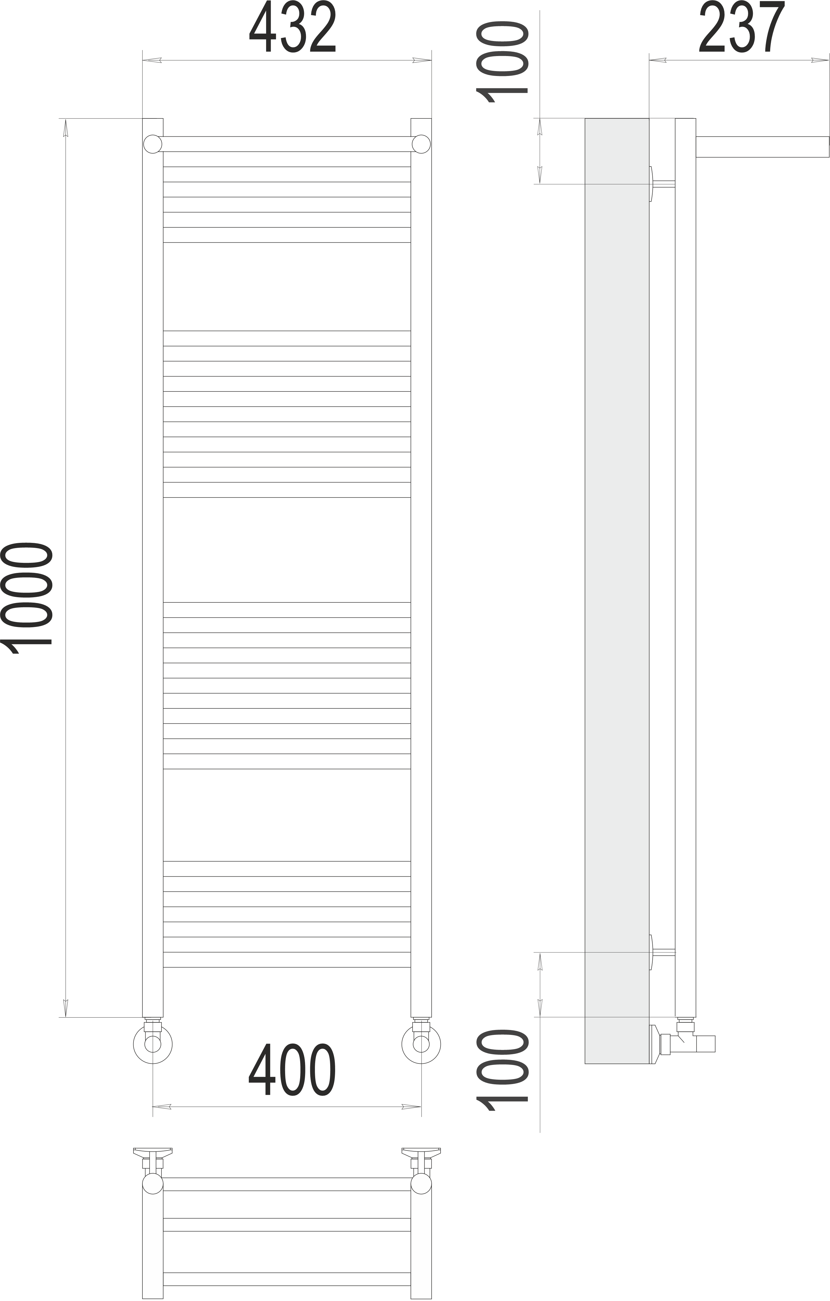 Все изделия серии Terminus "Люкс" укомплектованы фитингами (вентили, эксцентрики, отражатели) и готовы для подключения к системе ГВС.