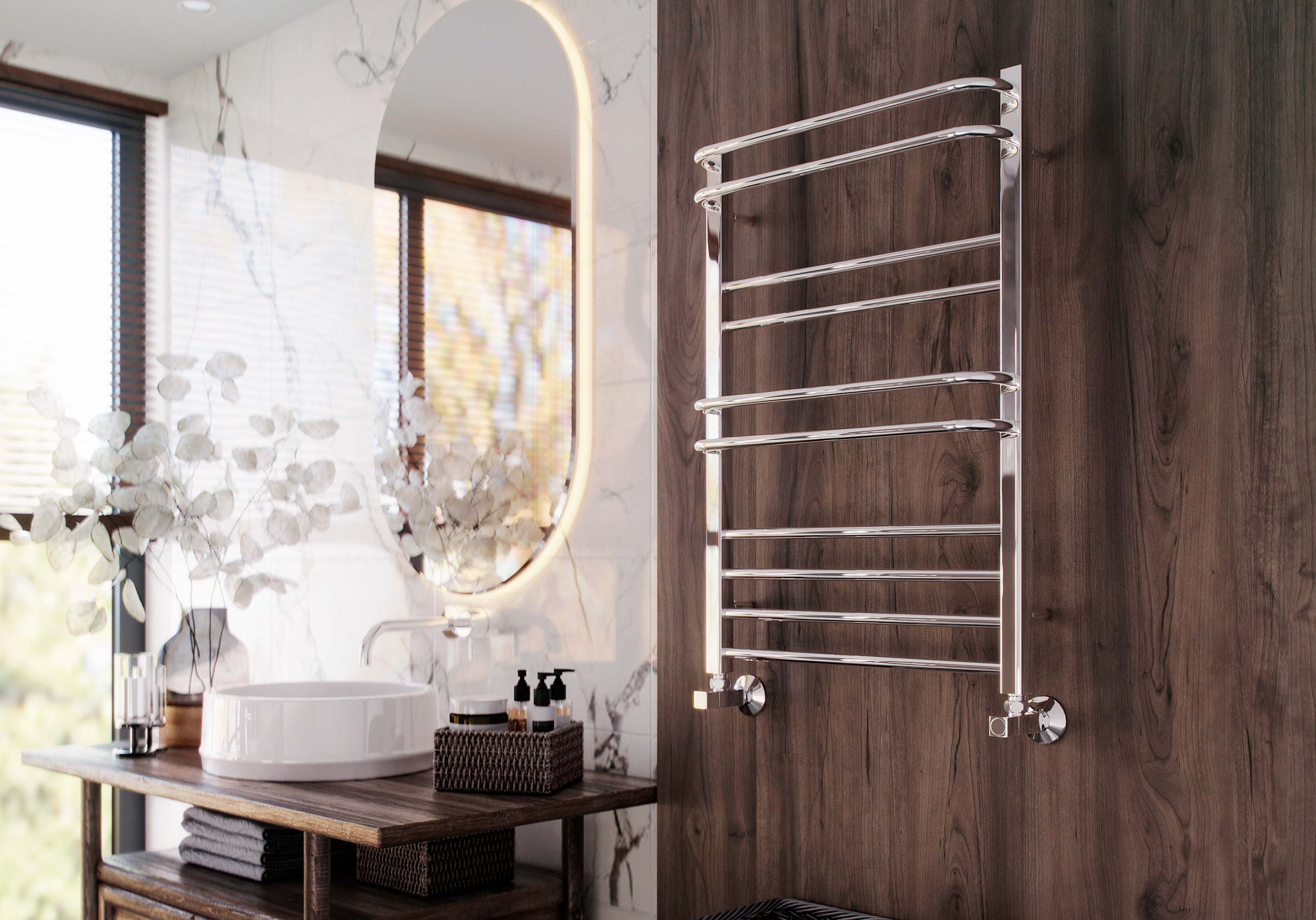 • Простота установки: водяной полотенцесушитель легко монтируется на стену и подключается к системе горячего водоснабжения, что позволяет сэкономить время и силы на установку. Габарит выступа от стены регулируется телескопическими крепежами.