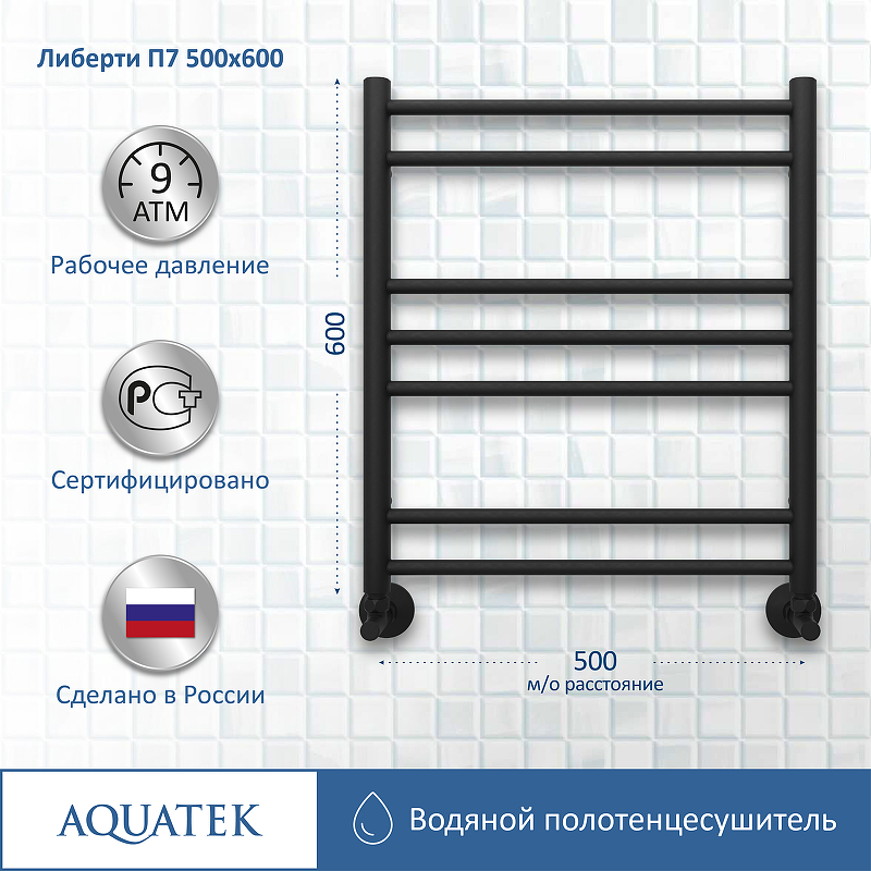 Водяной полотенцесушитель Акватек Либерти П7 50х60 см черный муар AQ RR0760BL