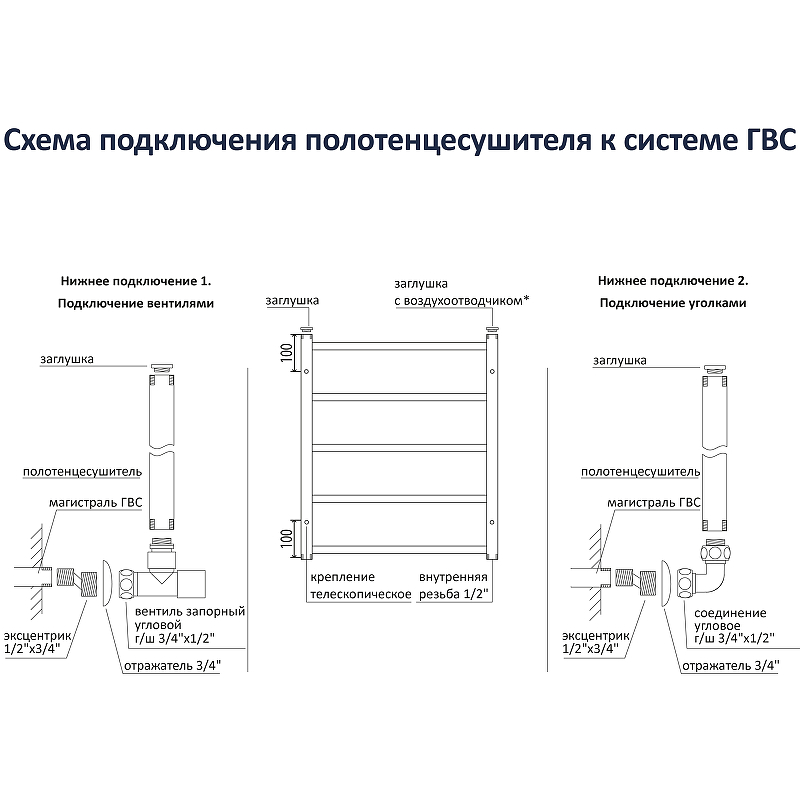 • Простота установки: водяной полотенцесушитель легко монтируется на стену и подключается к системе горячего водоснабжения, что позволяет сэкономить время и силы на установку. Габарит выступа от стены регулируется телескопическими крепежами.