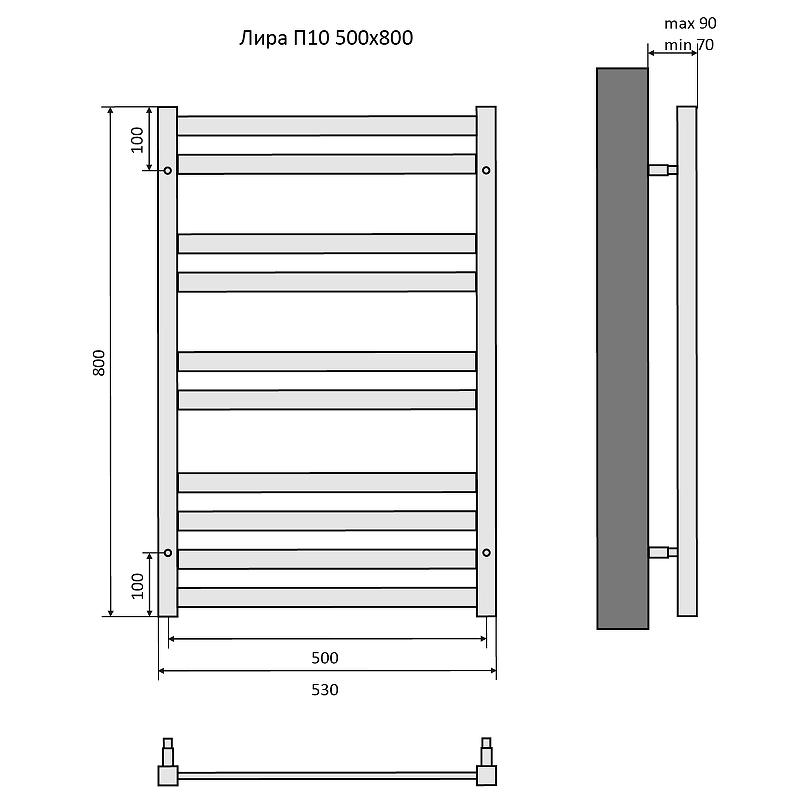 Водяной полотенцесушитель Акватек Лира П10 50х80 см черный муар AQ KP1080BL